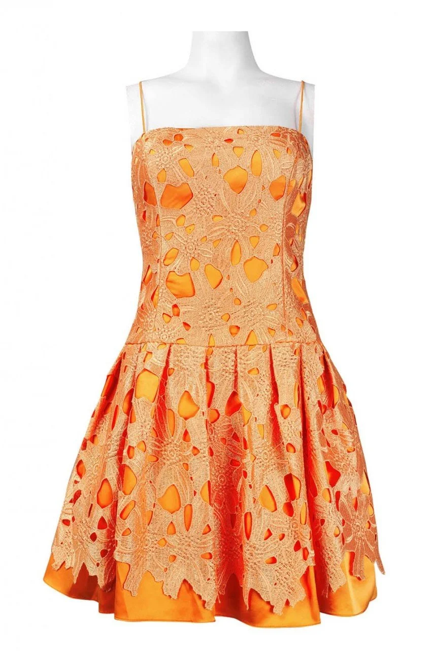 | Details: | Spaghetti straps, Pleated skirt, Back zipper closure, Orange |