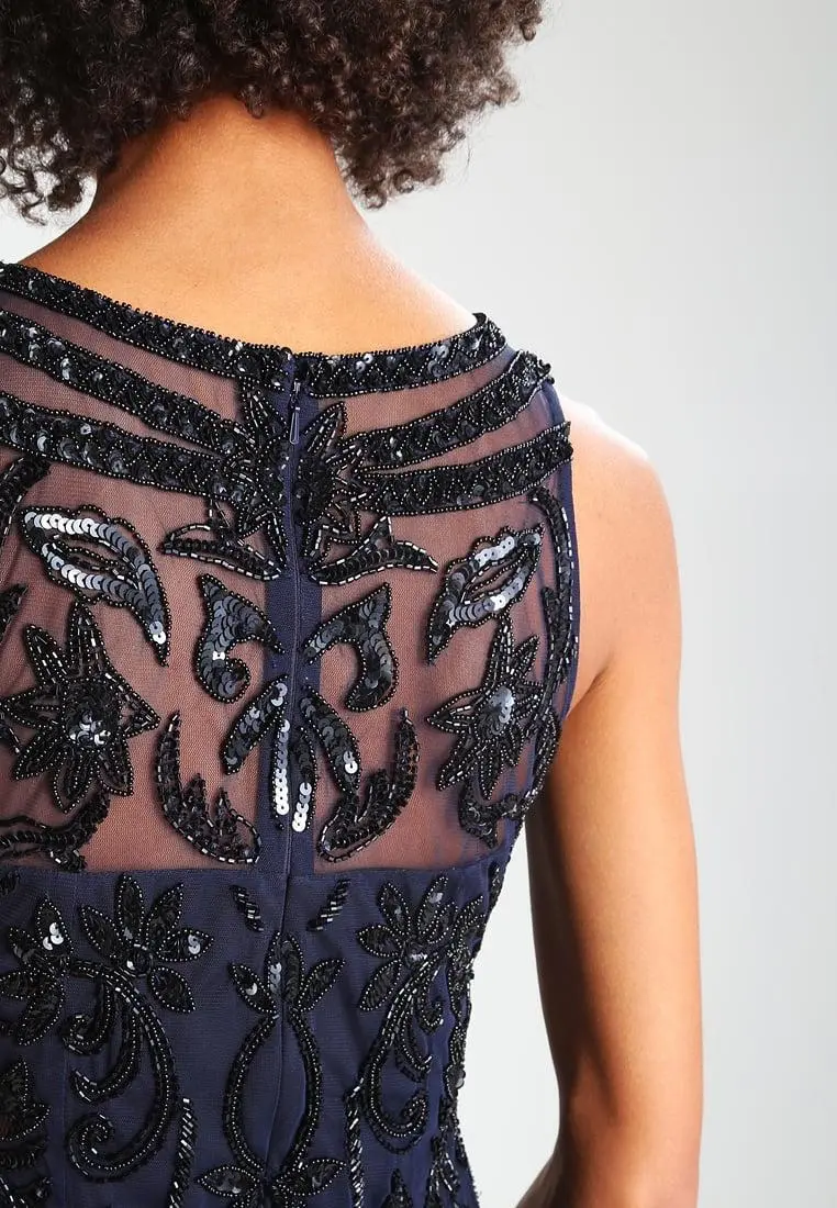 | Details: | Sleeveless, Zipper back, Illusion, Embellished, Mesh fabric dress |