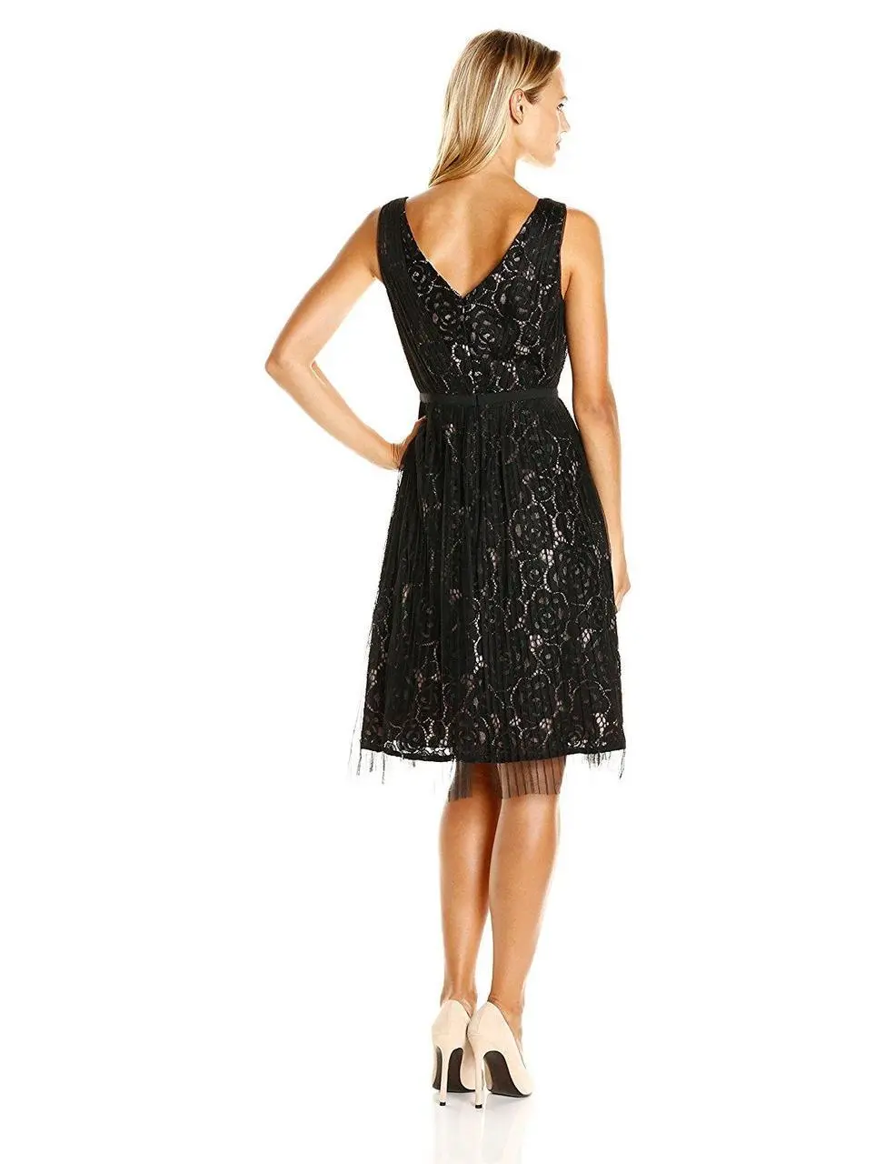 Optimize the attraction of your special event in this alluring dress by Adrianna Papell AP1D100192. This dress offers a sleeveless and a V-neckline. Made of lace and mesh fabric, this style is sure to make you turn heads all night. Be ready to mesmerize the night in this Adrianna Papell.