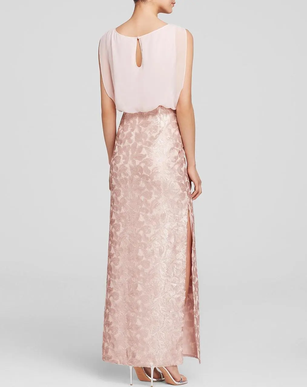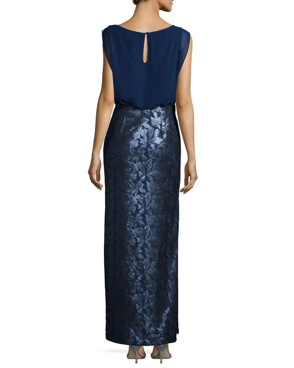 Claim that look of sophistication wearing this glamorous dress by Aidan Mattox 251704850. This dress features a bateau neckline and a keyhole at the back. The skirt is sequins embellished and this dress is made up of mesh fabric. Be ready to mesmerize the night in this Aidan Mattox creation.