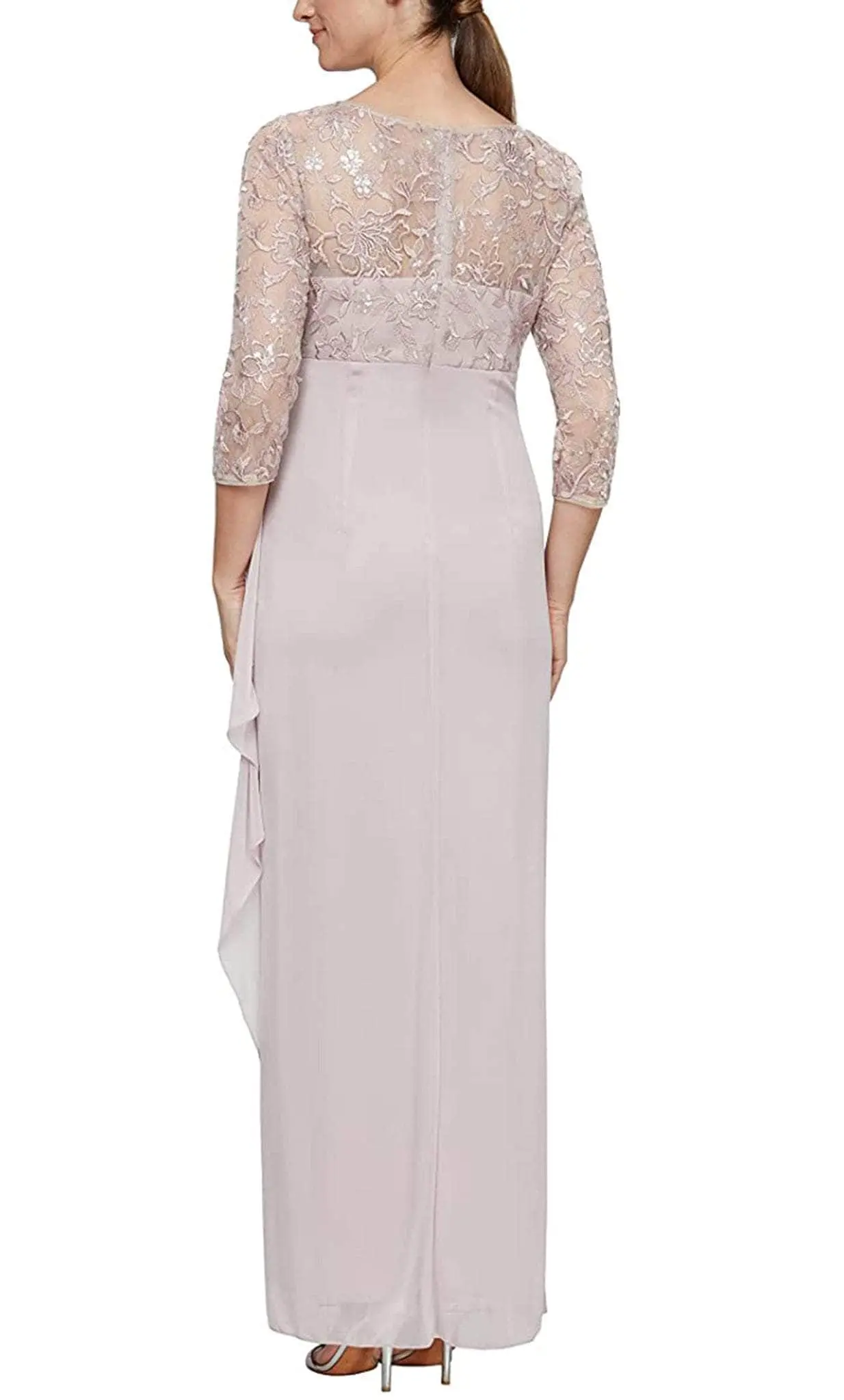 Express your unique persona classic sophistication in Alex Evenings 81171180. This outfit gives you a soft glamorous look with its gentle details of embroidery on the bodice. Matched to a comfortable and smooth chiffon fabric of the column silhouette that started off in a high waistline with side ruches. Presents in sheer quarter sleeves topped with embroidery applique. This Alex Evenings 81171180 is the perfect prom dress for the girl who wants to stand out from the crowd while looking glamorous. Model is wearing Faded color.