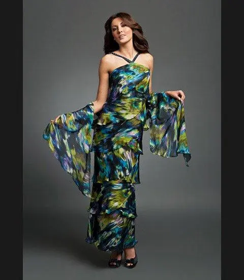 | Details: | Sleeveless, Chiffon fabric, Beaded straps, Tiered, Back zip with hook-and-eye closure, Fully lined |