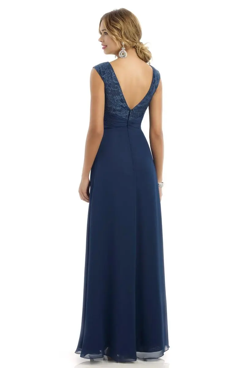 Dare to express yourself in this brazen dress from Alexia Designs 4210. This long elegant dress captivates in a V-neckline with cap sleeves. The lace bodice has a ruched empire waist and flourishes a full length chiffon A-line skirt. Dress to the nines in this glam dress by Alexia Designs. Model is wearing Dark Navy color.