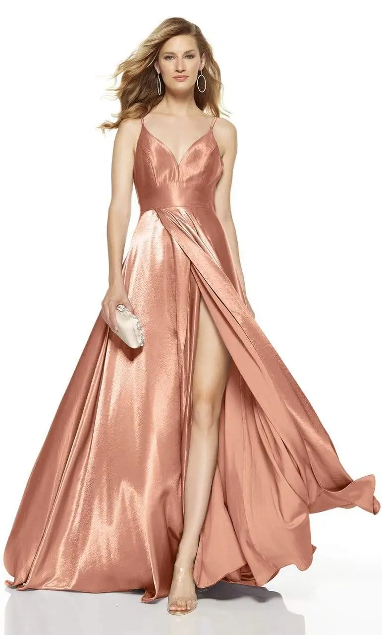 Show off that elegant feminine charm in this Alyce Paris 60624 creation. Beautifully tailored in Washed Charmeuse satin fabric, this vibrant piece flaunts a sleeveless V neckline with wide fitted band on highlighting the fitted midriff and features fine shoulder straps and mid-open straight across back. The flowy satin skirt exudes a lush volume as a high slit opens to show off those sexy legs. Be inspired by the dazzling flair of this Alyce Paris masterpiece.