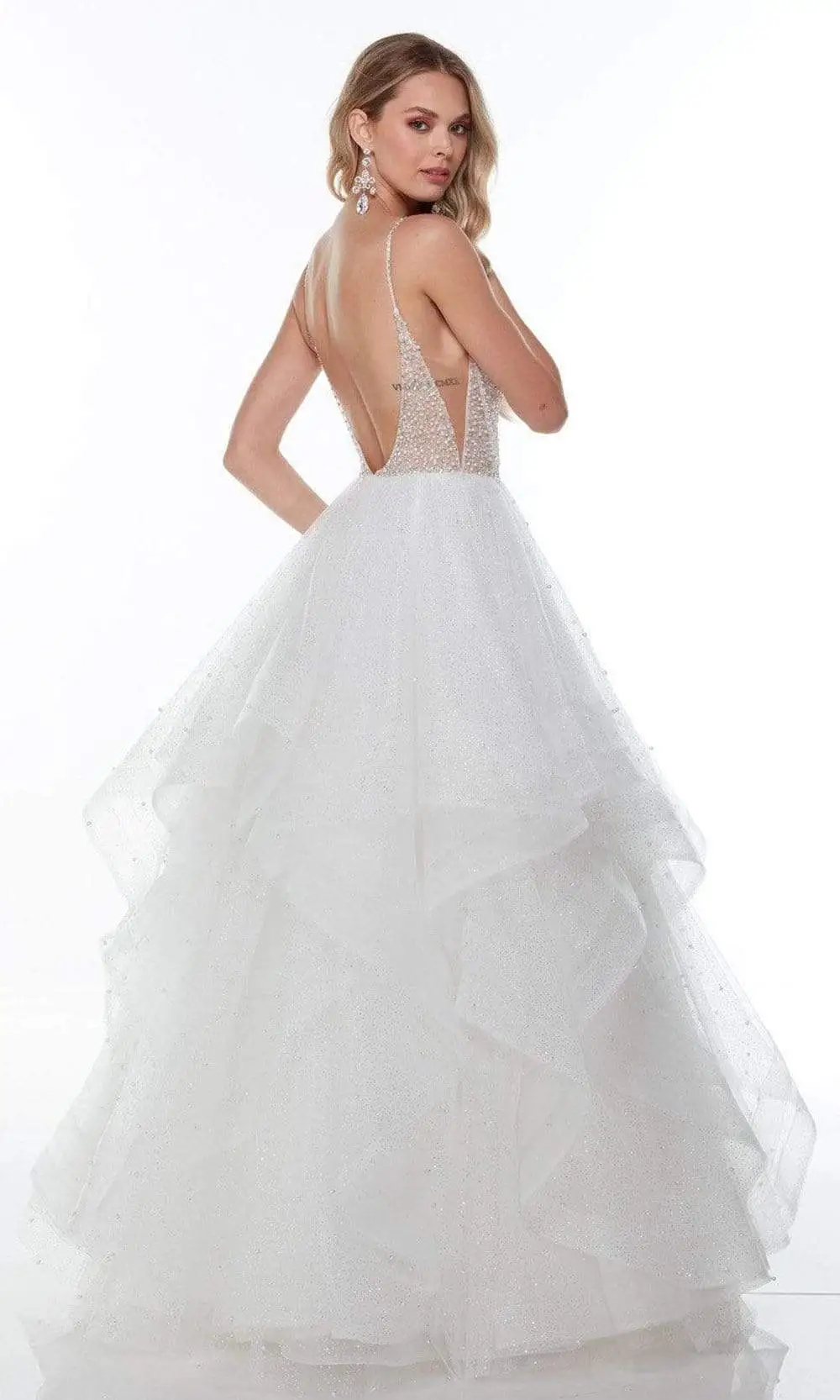 Every detail of this Alyce Paris 61107 is dripping with faultless charm! This beautiful long dress is embellished with beads and pearl throughout the dress. It presents in plunging neckline and uses spaghetti straps. Parades a tiered organza A-line silhouette in full length. Exposes a bare back style. Get noticed in this radiant dress from Alyce Paris.