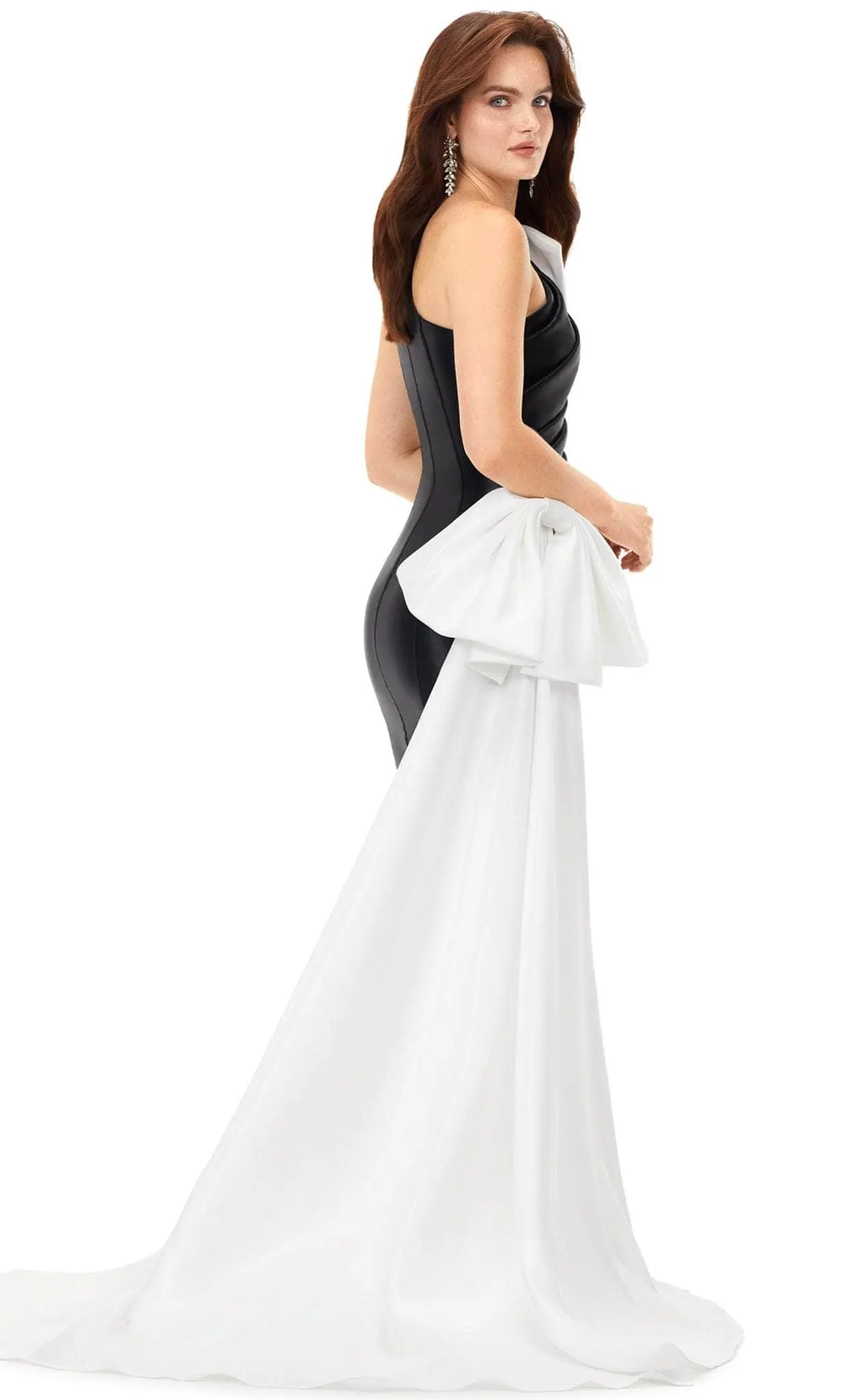 Capture that striking presence and get everyones attention in Ashley Lauren 11327. Bold and beautiful, this fashion-forward minidress is unforgettable with its unique pleated style. From the one-shoulder neckline to the hem ending mid-thigh, this dress is strategically wrapped in diagonal pleats that accentuate the curves. Dramatic, oversized bows adorn the shoulder, as well as at the hip with a stunning side train. Walk in glamour and let all heads turn on you in this creation byAshley Lauren 11327 Models are wearing Black/Ivory and Red colors.