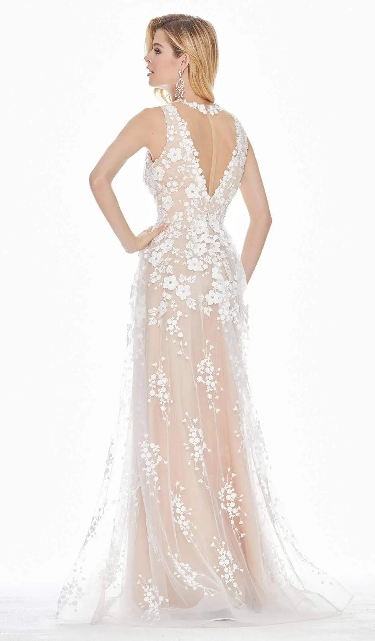 Look modern yet romantic in this elegant dress by Ashley Lauren 1392. Shows off in a sleeveless, jewel neckline with fitted bodice ornate with floral appliques and embroidery. The A-line skirt runs in full length hem and finishes in a horsehair hemline. This Ashley Lauren dress will make sure you turn heads all night long.