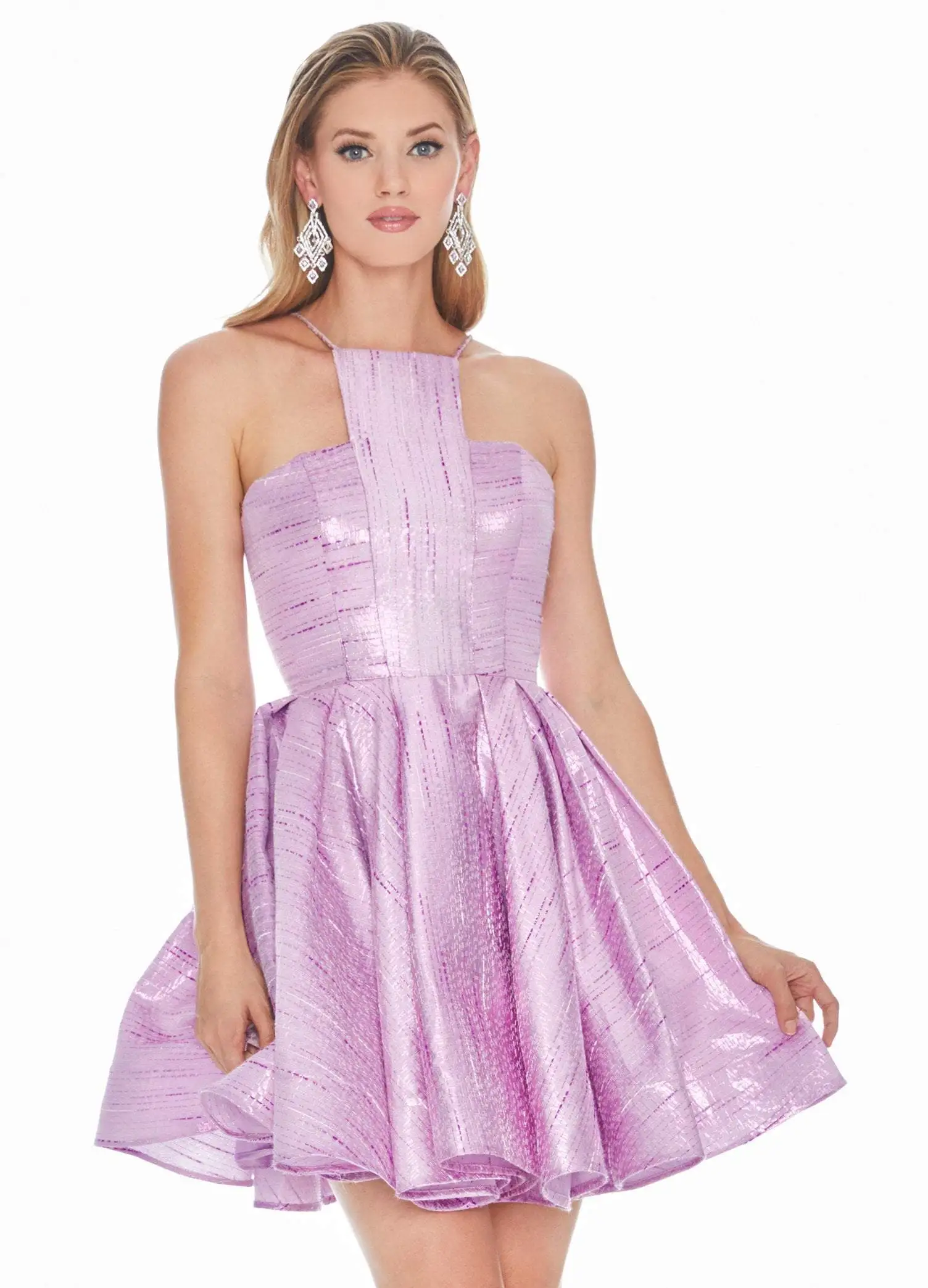 Reveal a feminine style that is utterly unforgettable in this beautiful Ashley Lauren 4081 creation. Fully sculpted with seams sectioned to accent on a two-toned metallic brocade, this elegant piece shows a high halter neckline with a cut-in design. Supported with spaghetti straps and defined with a mid-open back, the lushly designed A-line skirt falls into a short hemline. Wow everyone with a glorious sophistication in this Ashley Lauren masterpiece.