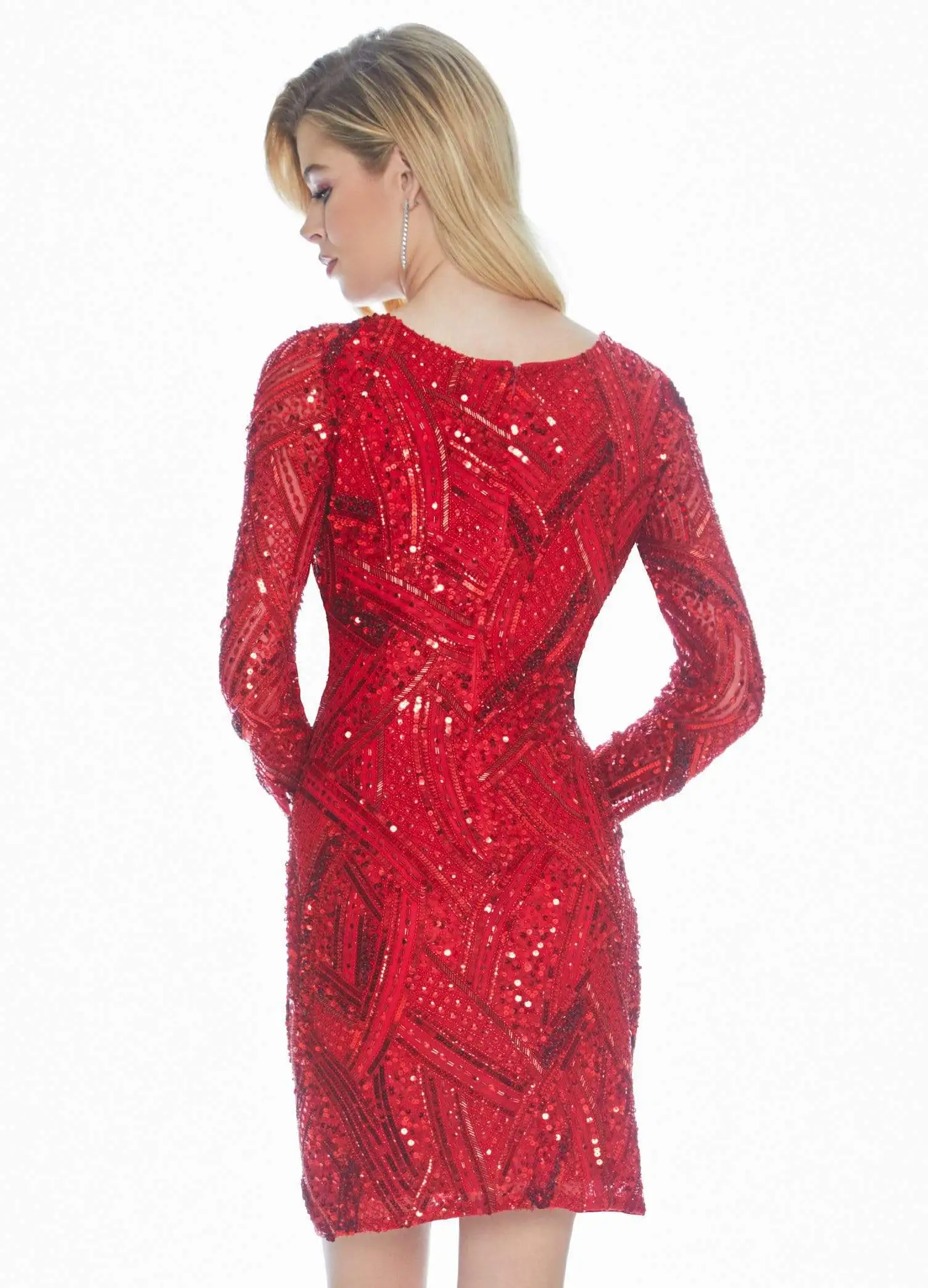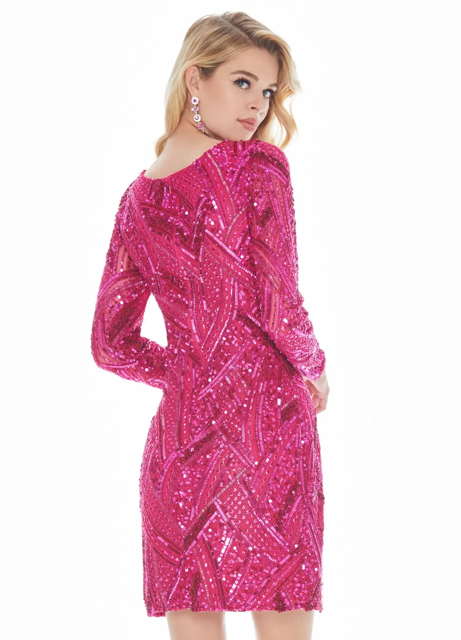 You are sure to be the life of the party when you wear this dazzling cocktail dress from Ashley Lauren 4122. The dress boasts in a fully beaded embellished fabric with scoop neckline and long slender sleeves. Structured in a fitted silhouette body, the dress closes at the back with center zipper closure and ends at mini-length. This Ashley Lauren is an absolute breathtaking look!