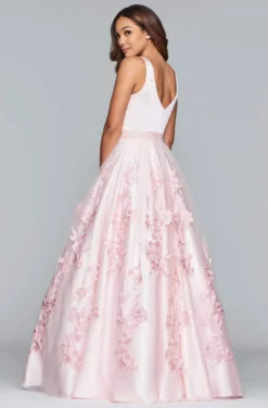 Faviana – S10230 Sleeveless Deep V-neck Satin Tulle Applique Ballgown
