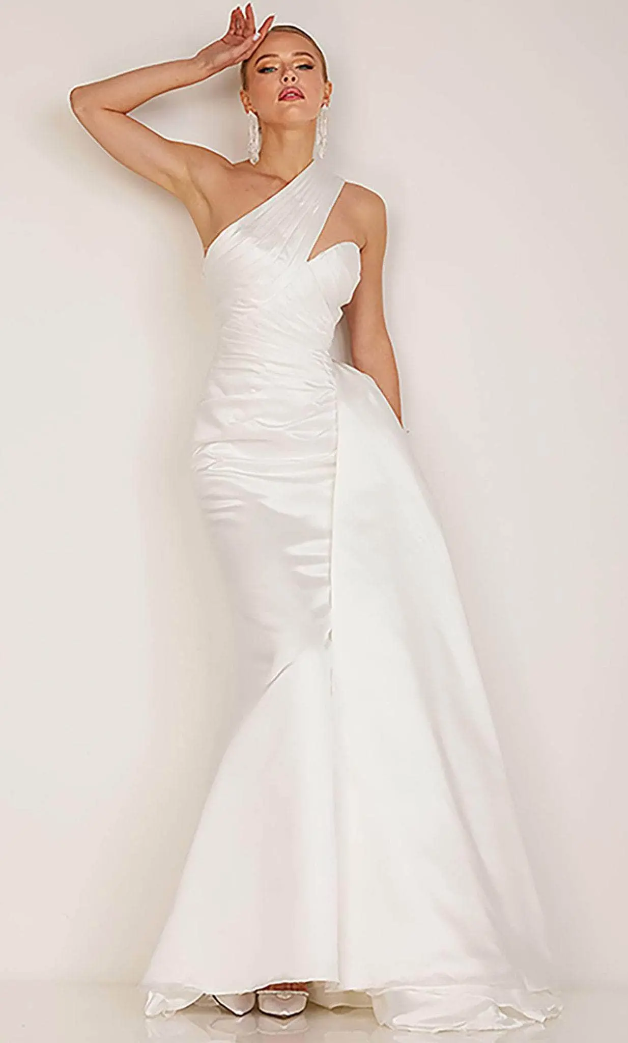 | Details: | One-Sleeve, Pleated Details, Ruched Details, Train, Over Skirt |