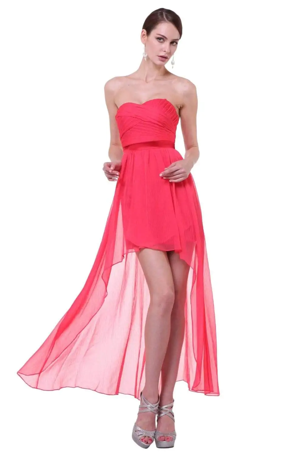 | Details: | Strapless, Pleated bodice, Chiffon, High low sheath skirt, Mid-open back, Back zipper |