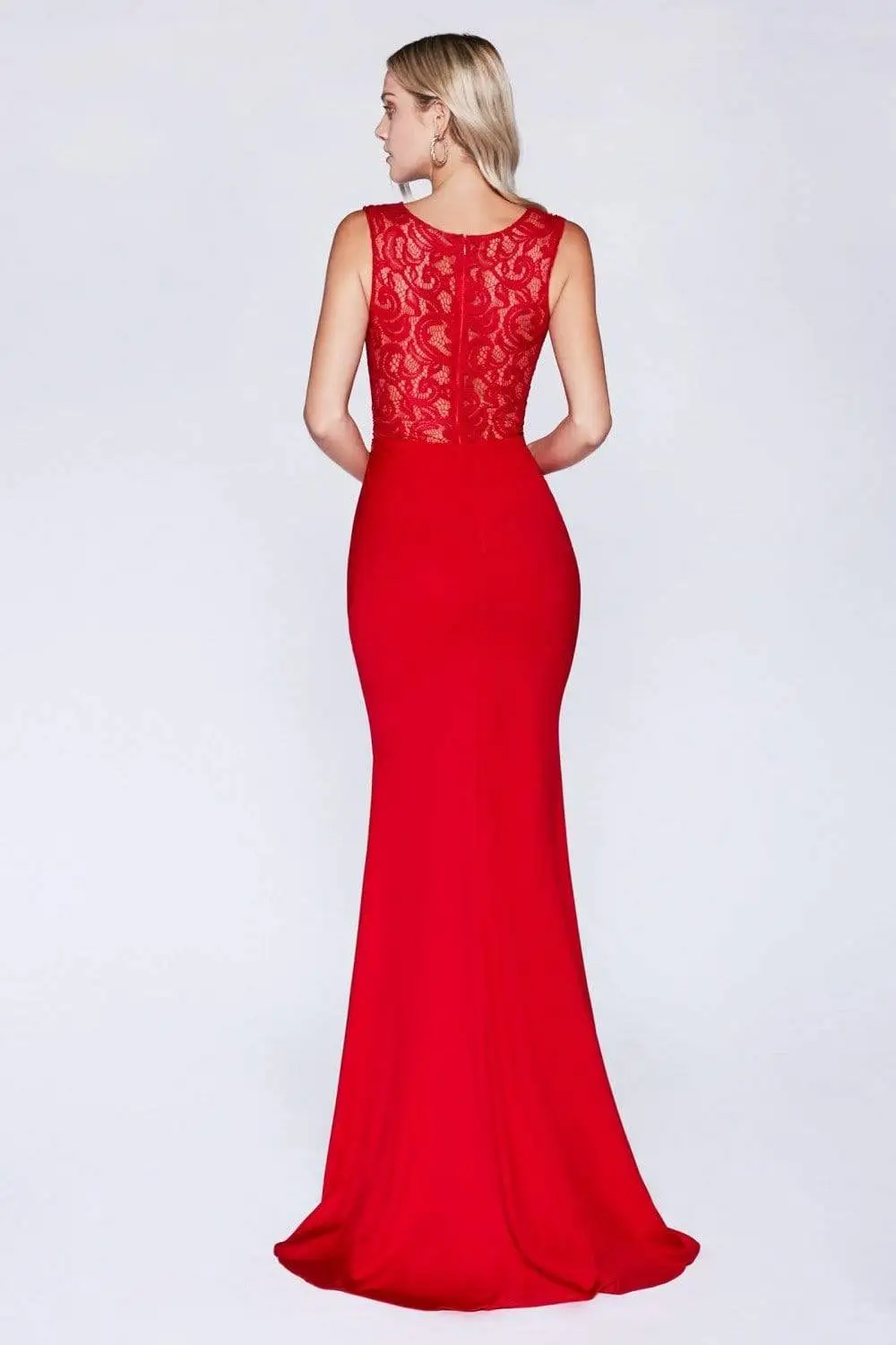 Look fantastic for your next formal event in this evening gown by Cinderella Divine CF115. This elegant dress showcases a sleeveless, scoop neckline in a sheer lace bodice with sweetheart shaped under layer. Sparkling beads embellished the lace applique that trims the neckline, armhole and the midriff. The floor length smooth sheath skirt creates an elegant finish to the dress. Capture the glamour as you walk on this stunningly gorgeous Cinderella Divine creation.