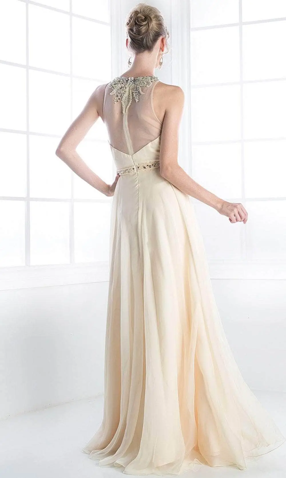 This Cinderella Divine JC3373 is the perfect choice for the girl who wants to look attractive without being suggestive. This gives a soft and sweet vibe, bedazzled with crystal beads along the sheer jewel neckline. Bodice is ruched that is complementary with the texture of this dress’ silhouette and a thin band is put around the natural waist that gives way to the beautifully tailored A-line cut. This dress is secured using back zipper closure. Cinderella Divine is your excellent pick when you dare to look stylishly spectacular! Models are wearing Champagne, Blush and Mint colors.