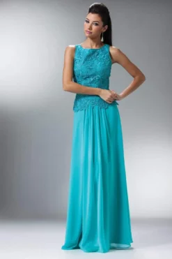 Create a perfect evening wearing this elegant dress by Cinderella Divine 1453. This long dress pictures sophistication with a sleeveless, bateau neckline with bodice embellished with lace overlay. The chiffon skirt flows towards the floor and opens in an A-line silhouette. Glamour gets gorgeous with this dress by Cinderella Divine.