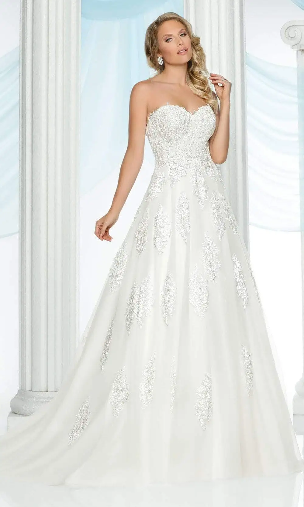 Embrace a radiantly romantic look in the flatteringly feminine dress from Da Vinci Bridal 50430. Look like a princess in this Lace and tulle gown in sweetheart neckline embedded in a lace pattern up to its sheer zipper back. This A-line gown has a sheer tulle ball gown style skirt wrap in a ribbon on its waist that looks flowy and sophisticated when worn. This Da Vinci Bridal evening gown will not let anyone miss your grand entrance.