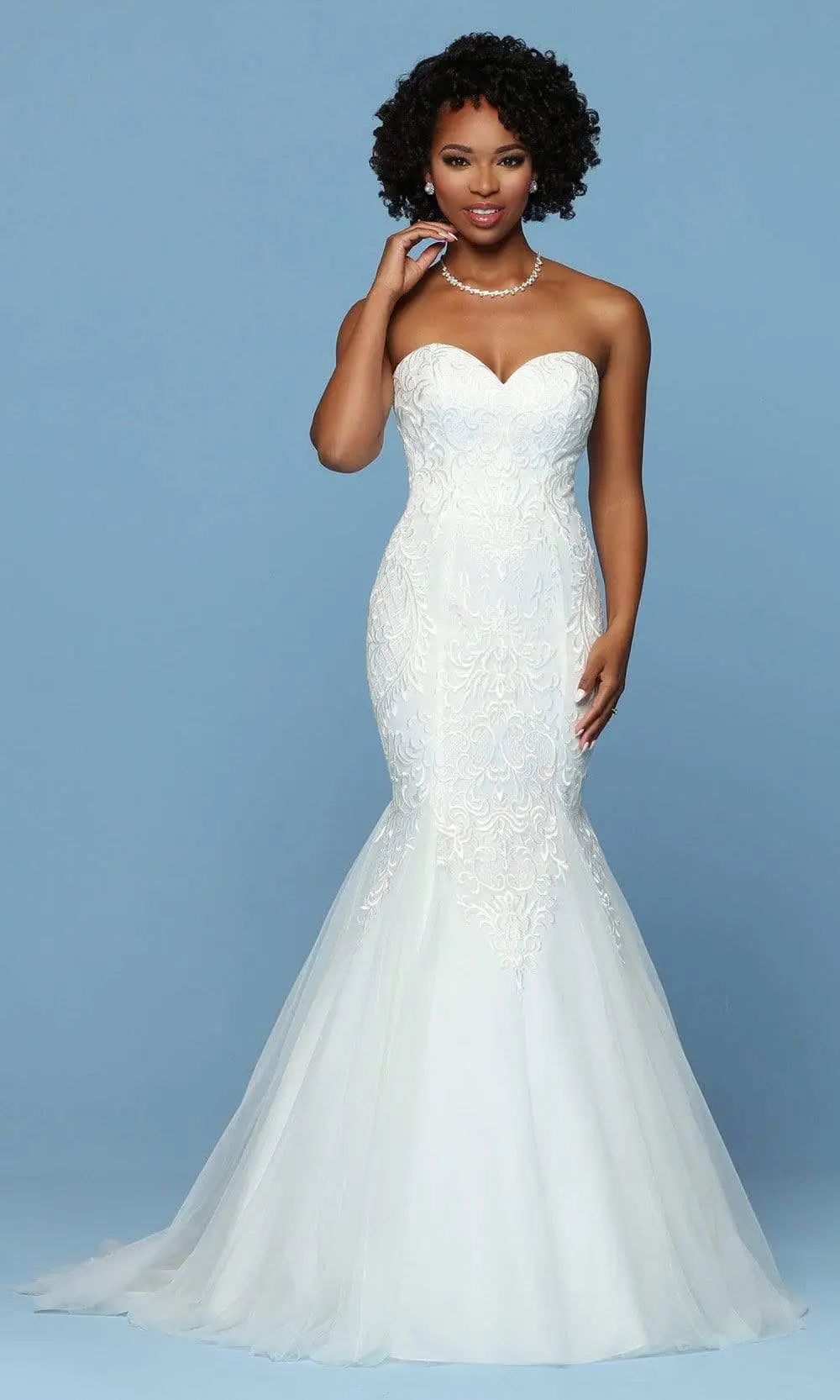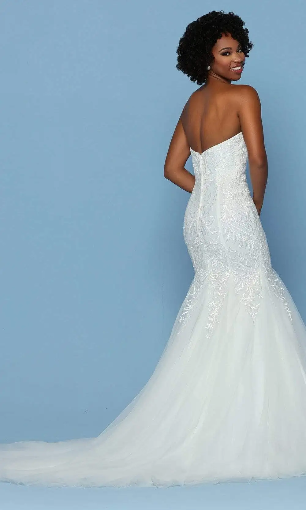 You will look fantastic in photos with a beautiful gown from Da Vinci Bridal 50550. Elegant and Sophisticated as this Embroidered Tulle Mermaid Wedding Dress showcase a fitted Lace Bodice in Strapless sweetheart Neckline and open back. All gathered in a beautiful Mermaid skirt ending in a Chapel Train. Da Vinci Bridal making it ideal for the contemporary bride with a timeless sense of style.