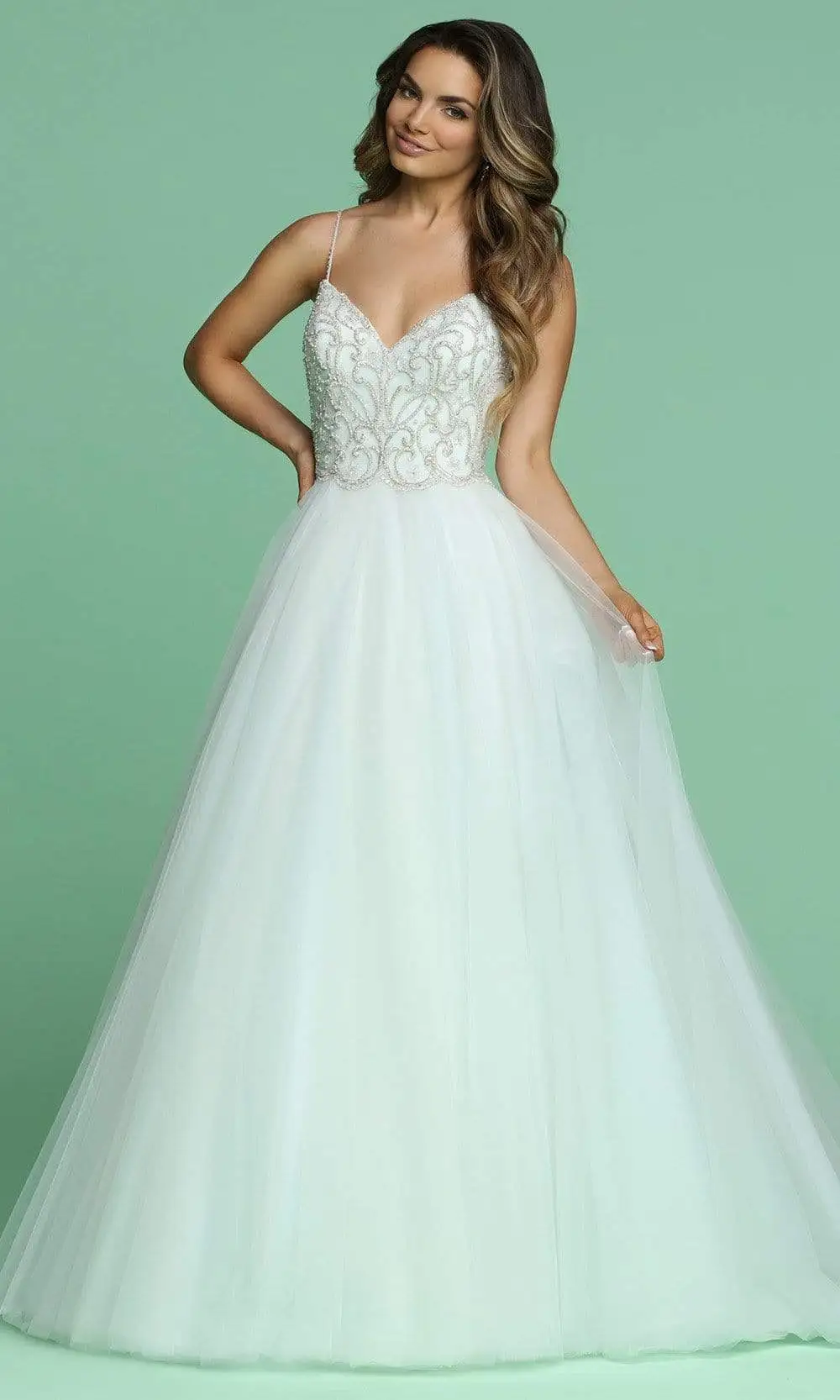 You will look fantastic in photos with a beautiful gown from Da Vinci Bridal 50603. Look stunning in this Tulle Ball Gown Wedding Dress. Featuring a Sweetheart Neckline and subtle Straps. Covered in Lace Applique Bodice with Beaded detailing. Gathered in a beautiful Tulle Ball Gown showcasing minimal Pleats and finishes in a Chapel Train. Da Vinci Bridal allows you to enjoy a classic, regal look for your ceremony and a completely different design for your reception