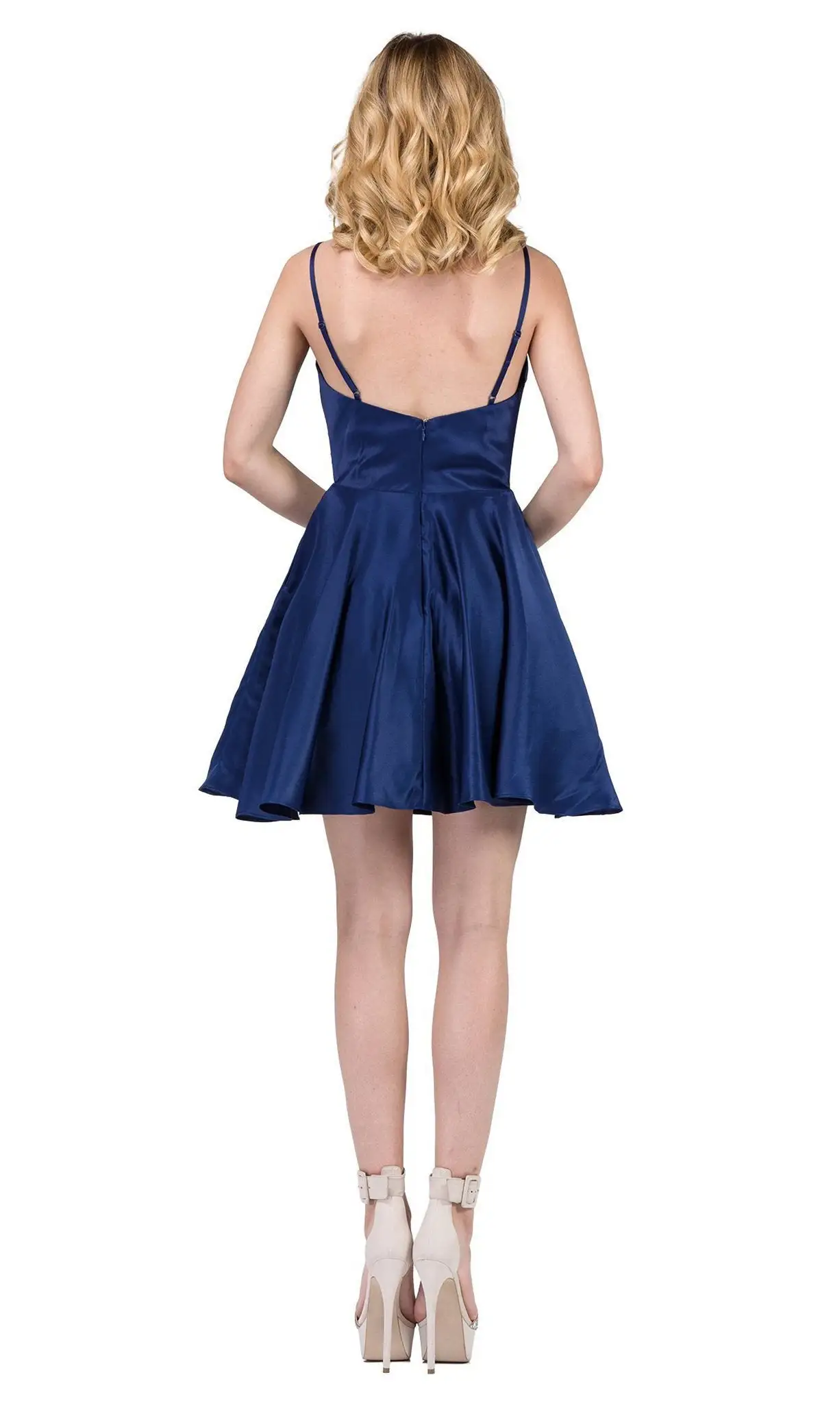 Engage the crowd with your stunning presence when you look so chic in this Dancing Queen 3059 creation. Sleekly sculpted with radiating pleats on a surplice bodice, this beauty reveals a v-neckline supported with spaghetti straps. Designed with a framing square back, the A-line skirt breaks with inseam pockets as beautiful waves dazzle until its short hemline. Unveil a rich and vivid style at your party in this Dancing Queen masterpiece.