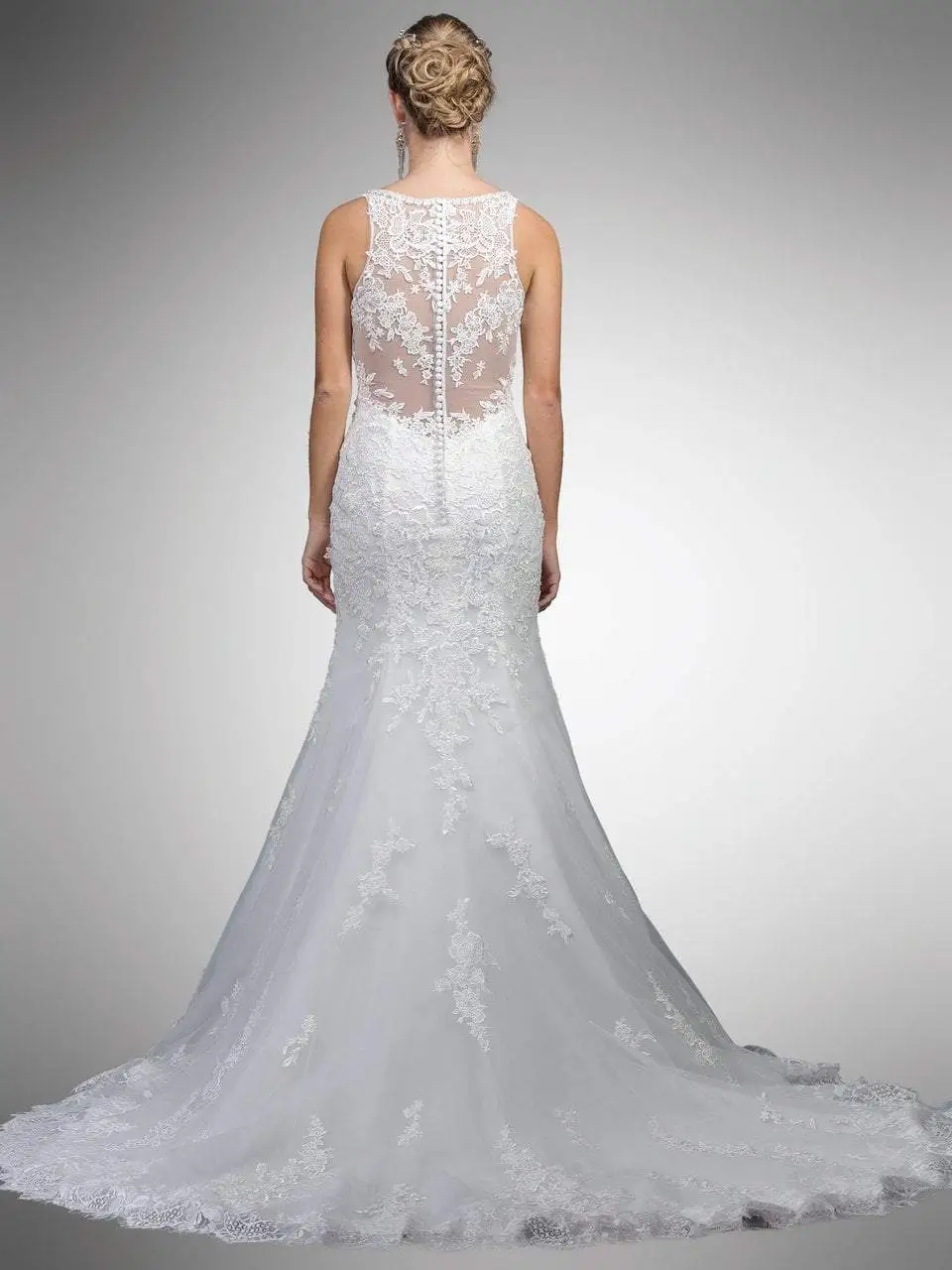 | Details: | Sleeveless, Rhinestones, Tapering Sleeves, Lace Appliques, Illusion Side Cutouts, Seams, Illusion Full Back, Fabric-Coated Buttons, Sweep Train |