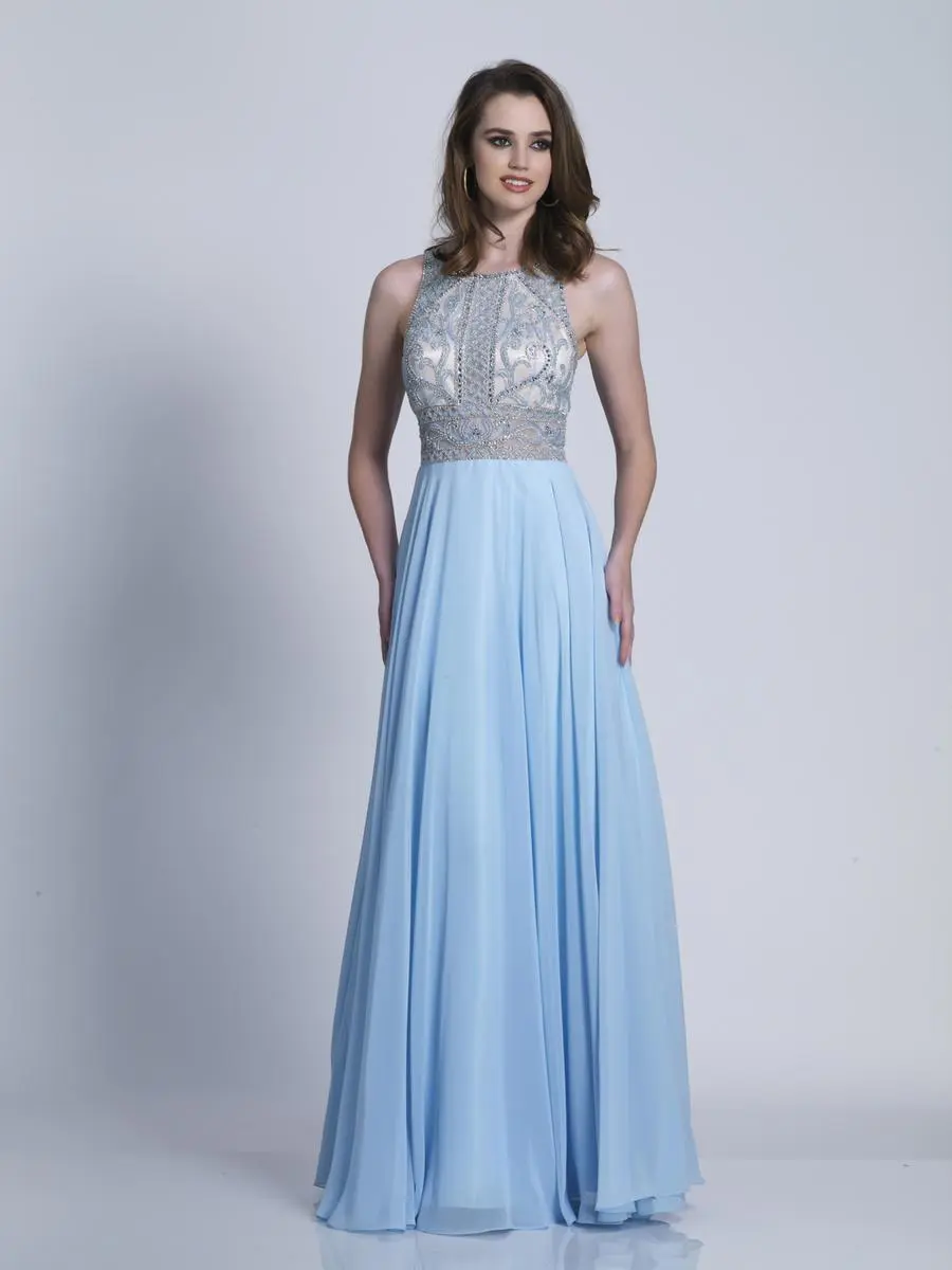Brave the evening with temptress beauty and grace wearing Dave and Johnny 3269. Features a sleeveless, jewel neckline with bodice adorned with embellishments and a back cutout. The A-line skirt runs in full length hem. Enhance your visual appeal in this luxurious Dave and Johnny dress.