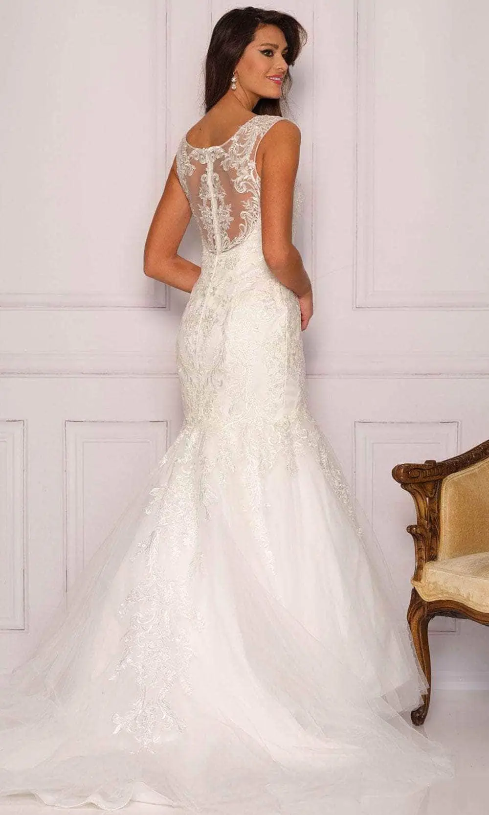 | Details: | Tulle, Lace, Sleeveless, Embroidery, Concealed Back Zipper, Sheer Back, Train |