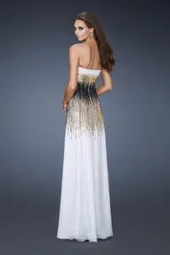 La Femme Strapless Tri-Color Sparkle Evening Gown 18592