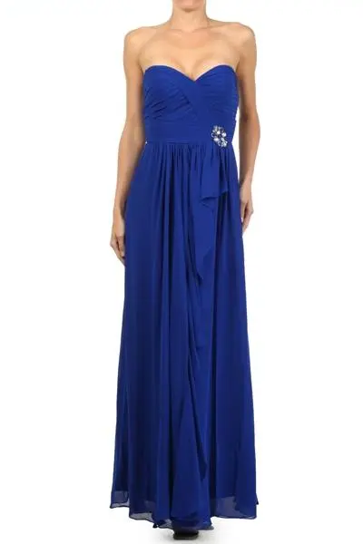 | Details: | Strapless, Chiffon, Draped bustier, Beading, Sheath skirt, Shawl |