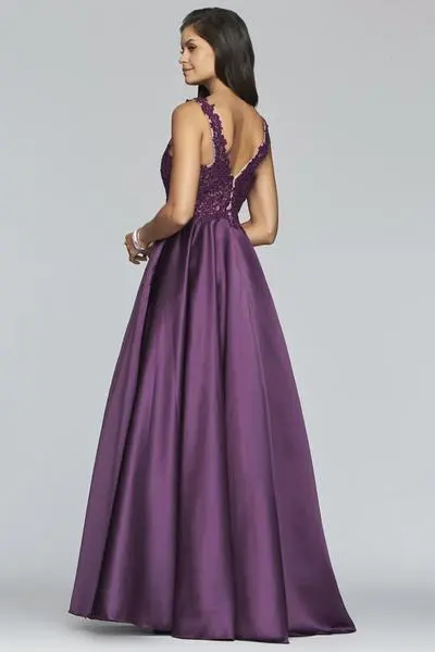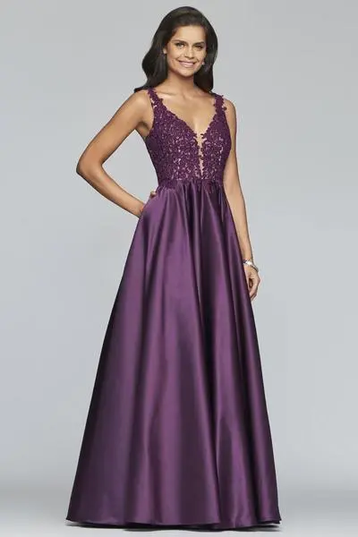 Go for total glamour in this gown from Faviana 10251. This gown has a sleeveless, V-neckline with fitted bodice ornate with embellishments. The back has a V-cut and a zipper closure while the skirt opens in a ballgown skirt with mini train. Look phenomenal in this evening gown by Favianas wearing Plum color.