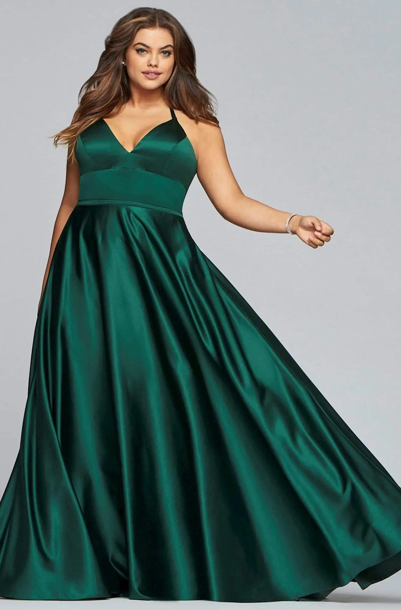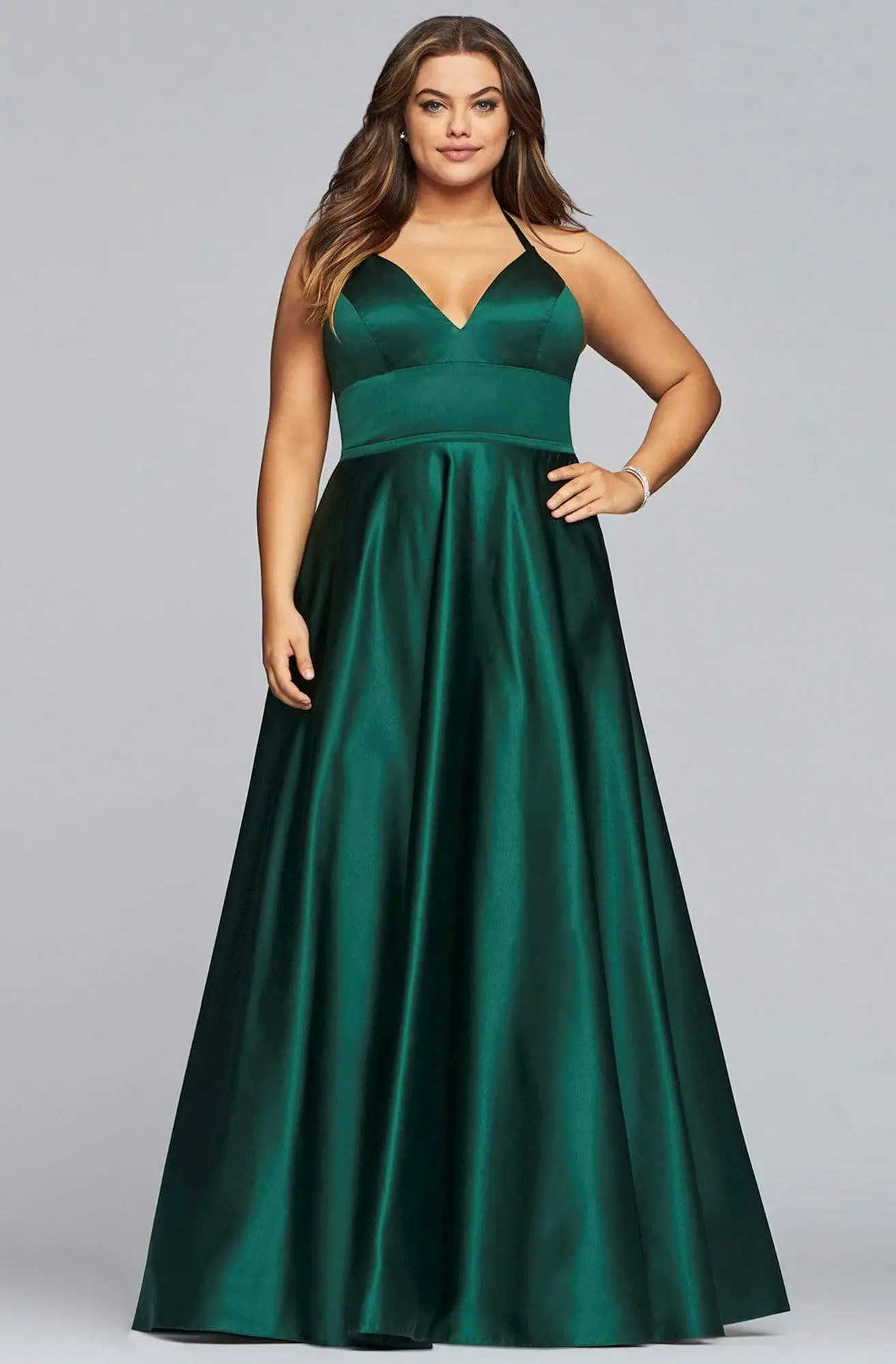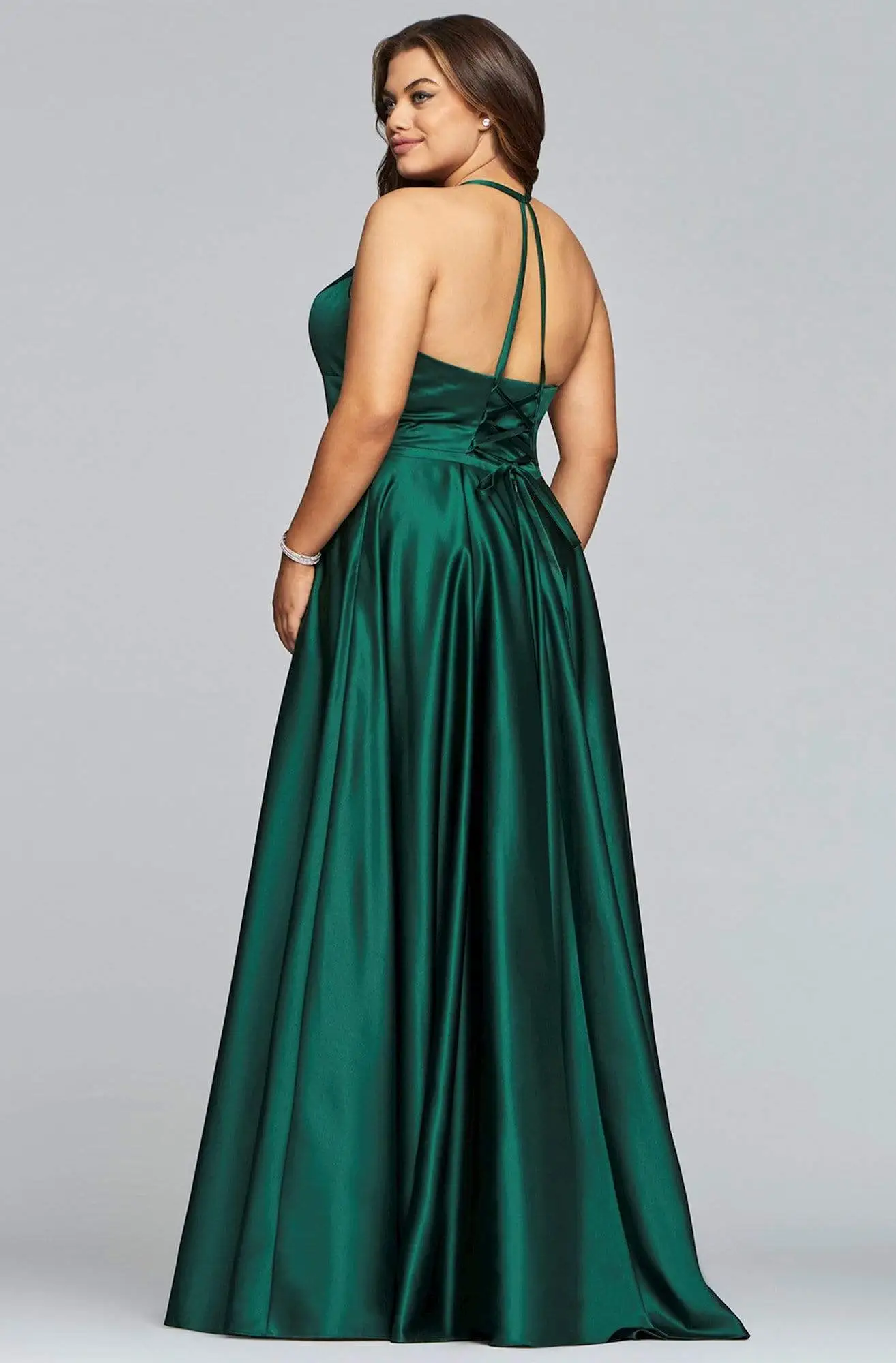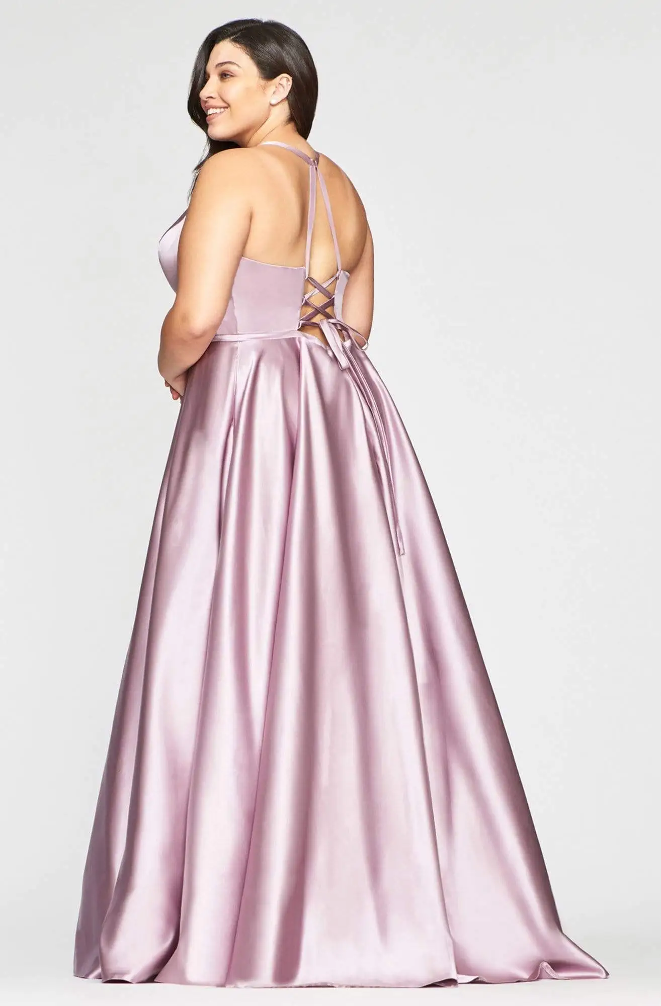 Be ready to catch everyones eyes in this satin dress by Faviana 9466. The gown parades in a sleeveless, halter neckline wIt istyled in an empire seam. The back has a lace up closure for an adjustable fit while the ballgown skirt is accented with side pockets for convenience. This Faviana creation is simply perfect for your next formal party! Model is wearing Hunter Green and Deep Mauve color.