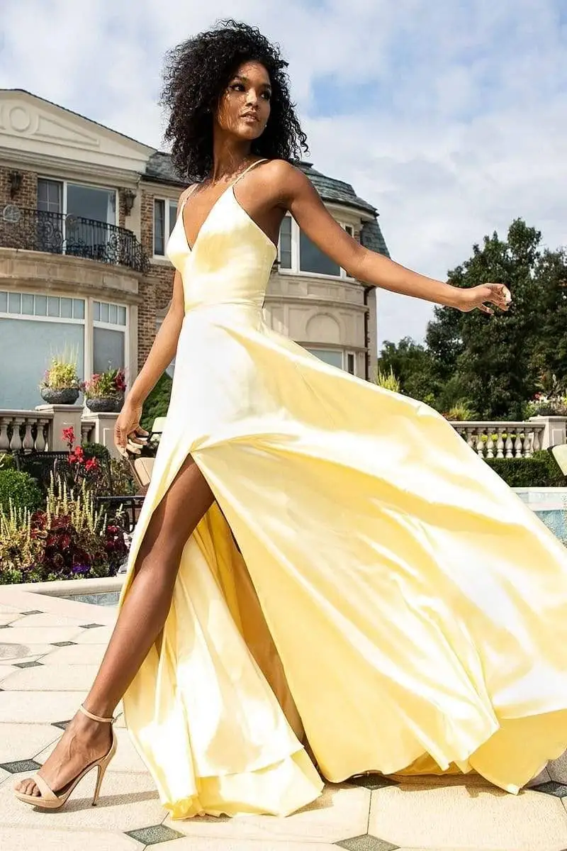 | Details: | Charmeuse fabric, Sleeveless, Plunging neckline, Strappy back, Side pockets, Lace up and back zipper closure |