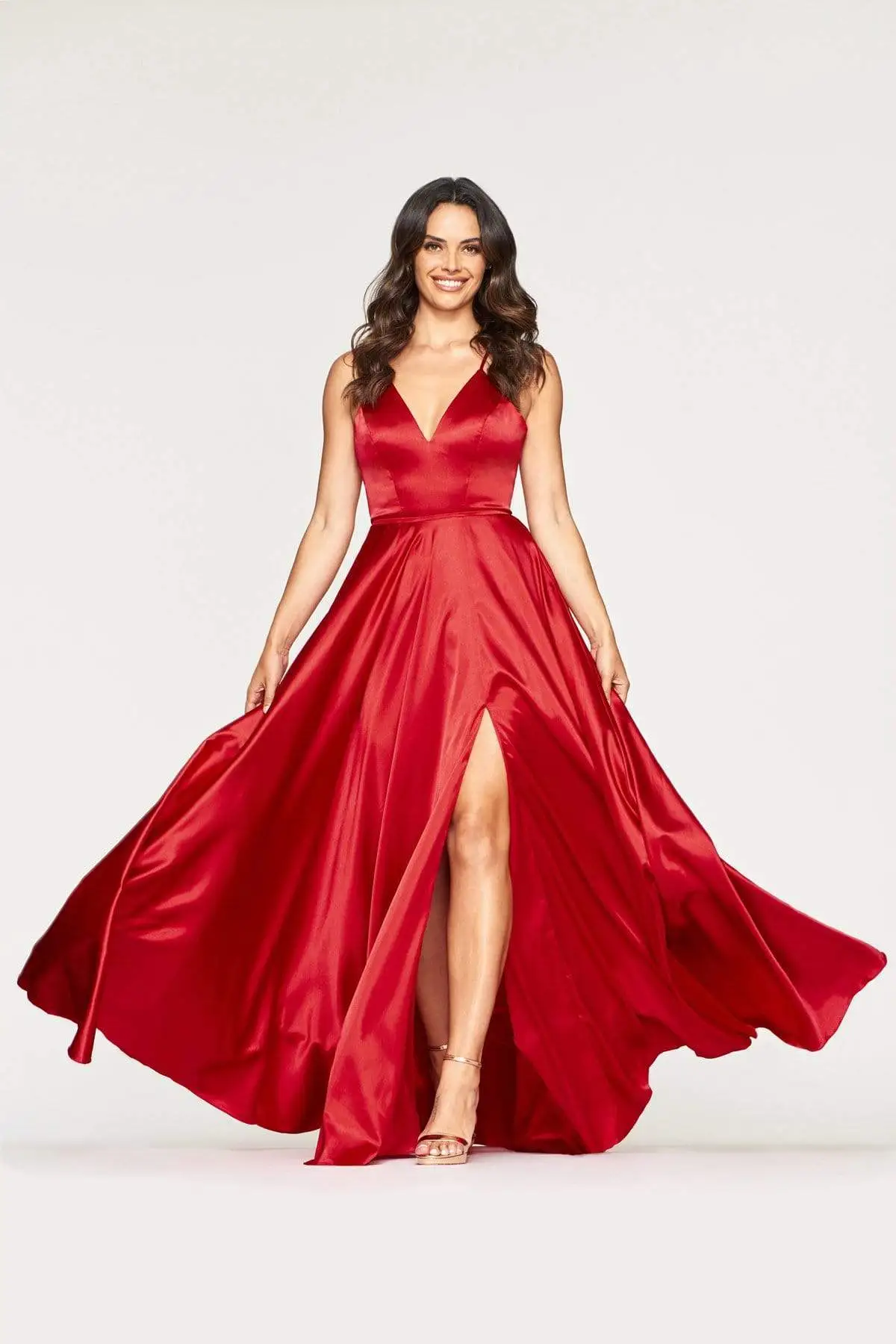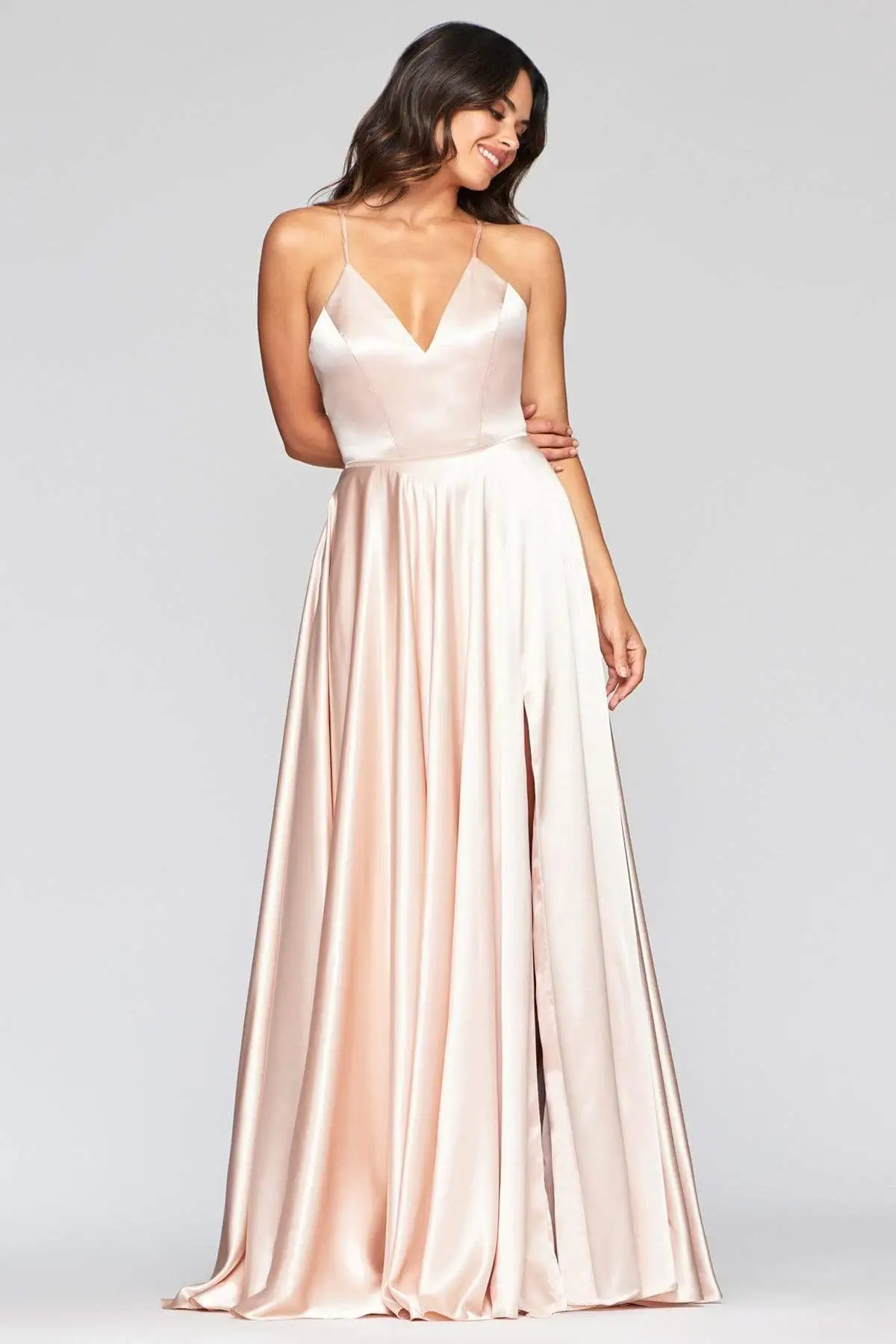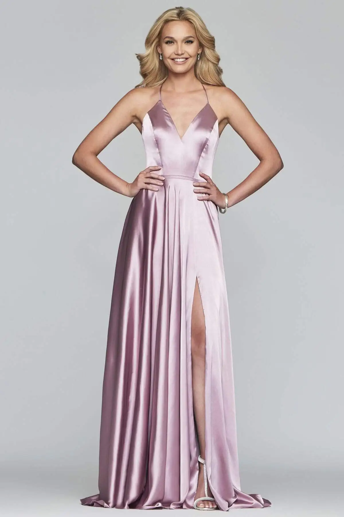 Steal the show in Faviana S10209 Evening dress. Beautifully crafted in the lightweight satiny weave of Charmeuse fabric, this long and sleeveless dress features a plunging V neckline with spaghetti shoulder straps. The low-cut back allures with lace-up details for an adjustable fit with zipper closure. The full-length skirt features side hand pockets and a side slit and finishes at floor length with a sweep train. This Faviana creation is the perfect match for the girl who wants to look both sexy and fashion-forward.