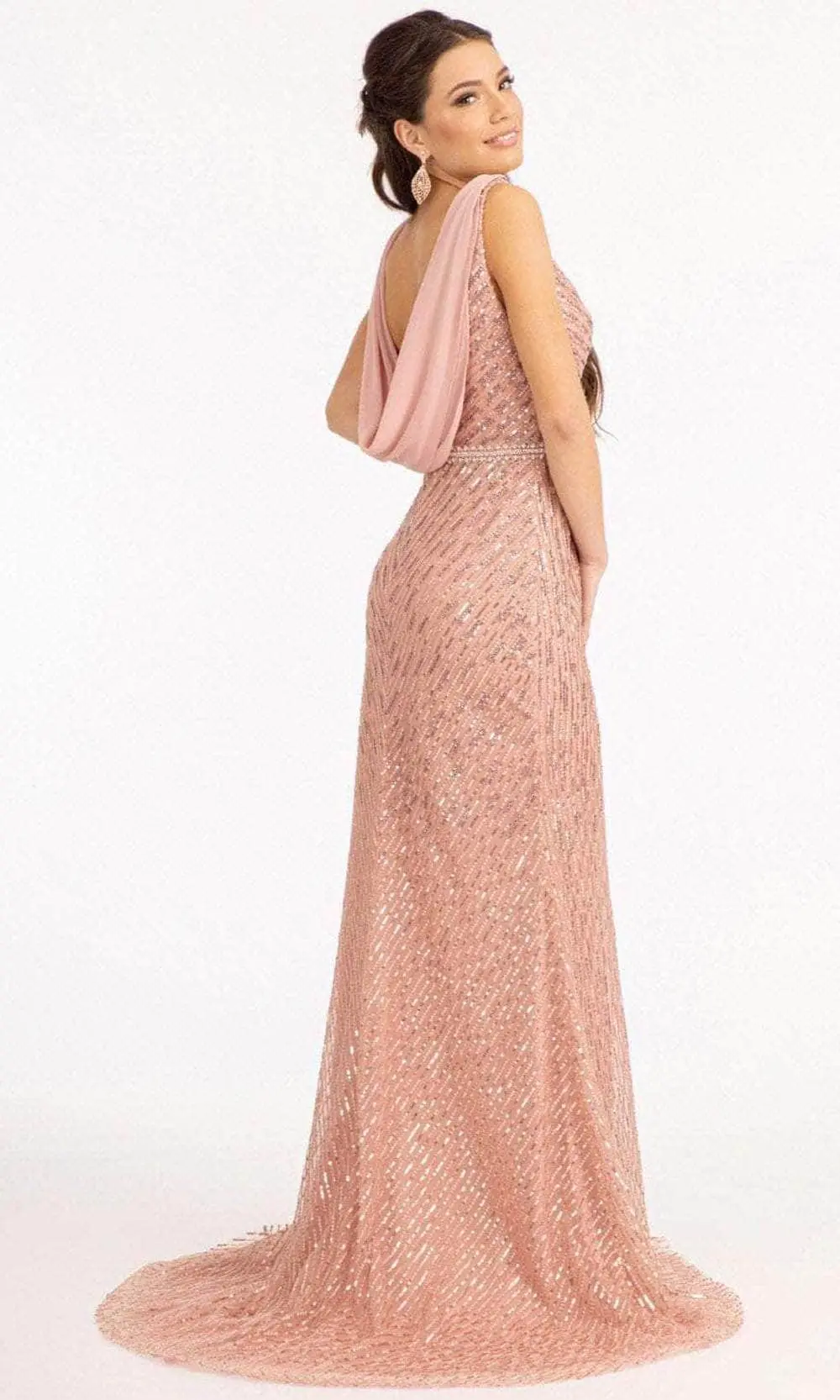 Channel red carpet glamour wearing this GLS by Gloria GL3008 masterpiece. Glistening with sequins, beadwork and embroidery all over its length, this gown flaunts a sleeveless, V neckline and scoop back with draped cape for a more alluring look. The mermaid skirt reveals a high slit cascade into a full-length mermaid silhouette and a sweep train finish. Capture the glamour as you walk on this stunning gorgeous GLS by Gloria creation. Find more Bridesmaid Dresses.
