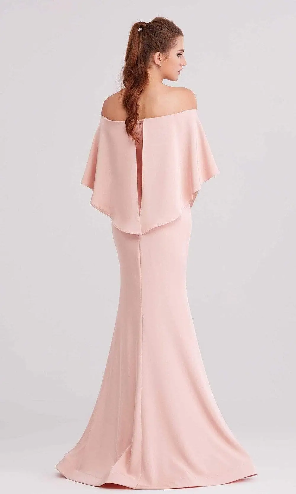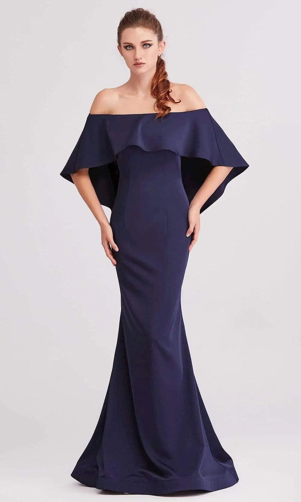 | Details: | Off shoulder overlay, Fitted bodice, Mermaid skirt, Sweep train |