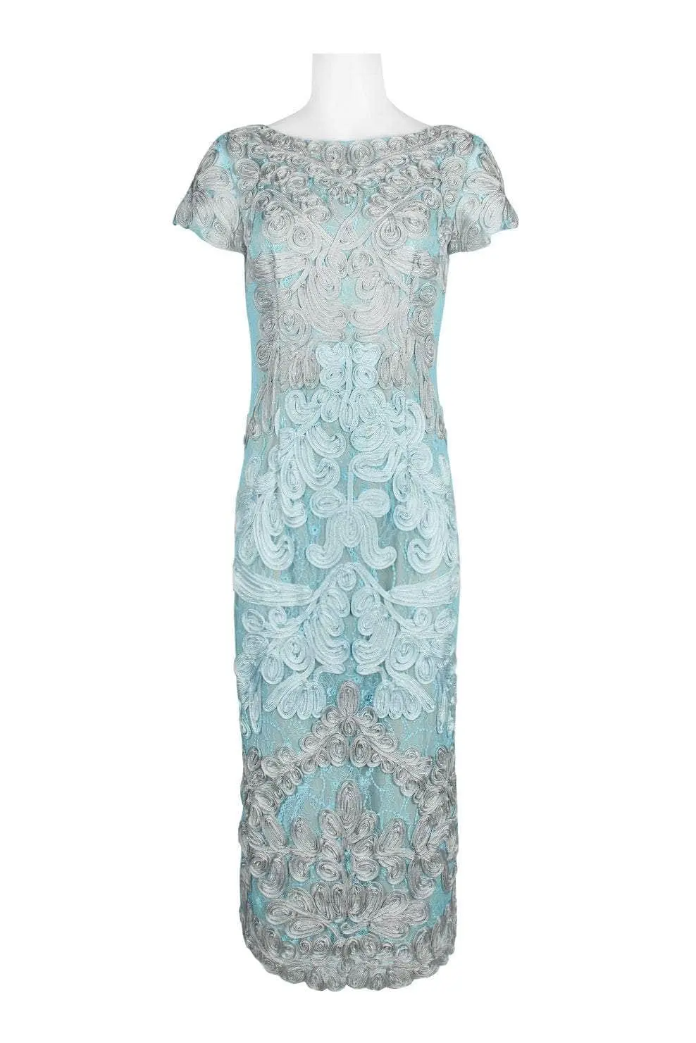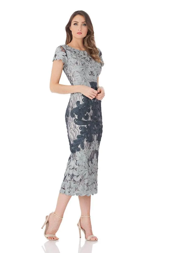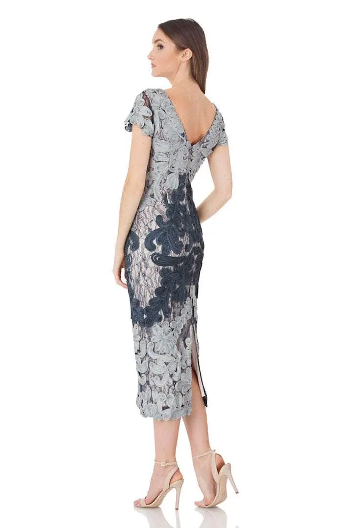 Dress to the nines in this gorgeous JS Collections 865626. This dress has a jewel neckline and short sleeves. This laced dress with satin lining features an invisible zipper at the back in V-style. The hem is finished with elegant floral lace and is finished at tea-length. Increase your attractiveness as you appear in this JS Collections design. Couture Candy is committed to provide the very best when it comes to dresses for every occasion, and we are delighted to have JS Collections on our side to aid us in delivering exquisite dresses for various occasions that are sure to make heads turn. Dress is pictured in Silver Ice and Raspberry Cherry. Model is wearing Cloud Navy color.Â