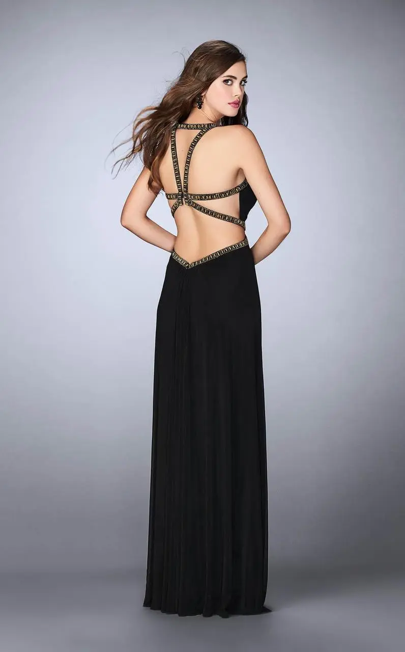 Be the personification of elegance and grace in this svelte stunner by La Femme 23632. The intricately-tucked net jersey darling presents gold beading along the belt, straps, and back. The sculpted beauty features a sweetheart neckline, intricate cutout back and a back zipper closure. Be the queen of every ball with this statuesque beauty by La Femme.