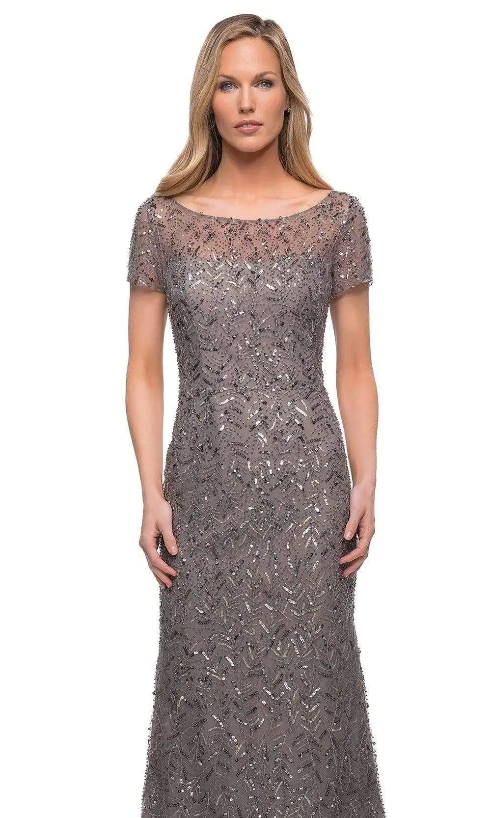 Show off your bubbly and pleasant personality with this dress by La Femme 29910. Embellished allover with sequins and beads, this mother of the bride long dress flaunts a full-length A-line silhouette. It presents in a jewel neckline and short sleeves. La Femme is sure to be both comfy and fashionable.