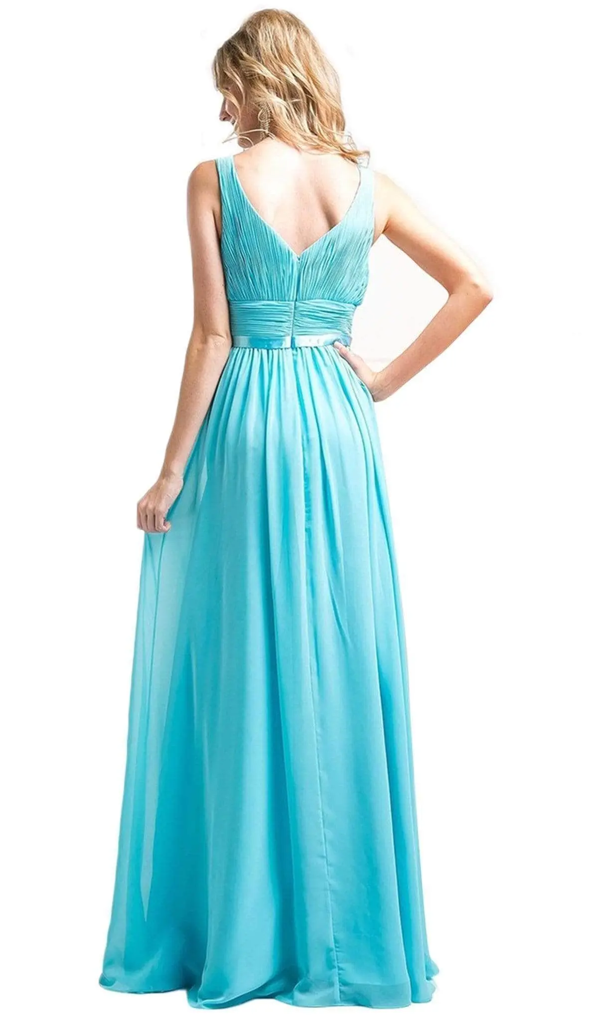Go wild and look jaw dropping in this luxuriously decorated Ladivine 1972 creation. This stunning gown features a plunging sweetheart neckline and a wide v cut back, as well as intricate shirred details along the sleeveless bodice. The gossamer layered A line skirt flares in soft ripples as it navigates down to the floor with its elegant full length hemline, which is embraced along the midriff with a finely tucked band blended with a tonal satin ribbon. Create a perfect evening wearing this Ladivine 1972 masterpiece. Models are wearing the Aqua, Black, Blush, Coral, Mint, Red, Rose and Royal colors. and