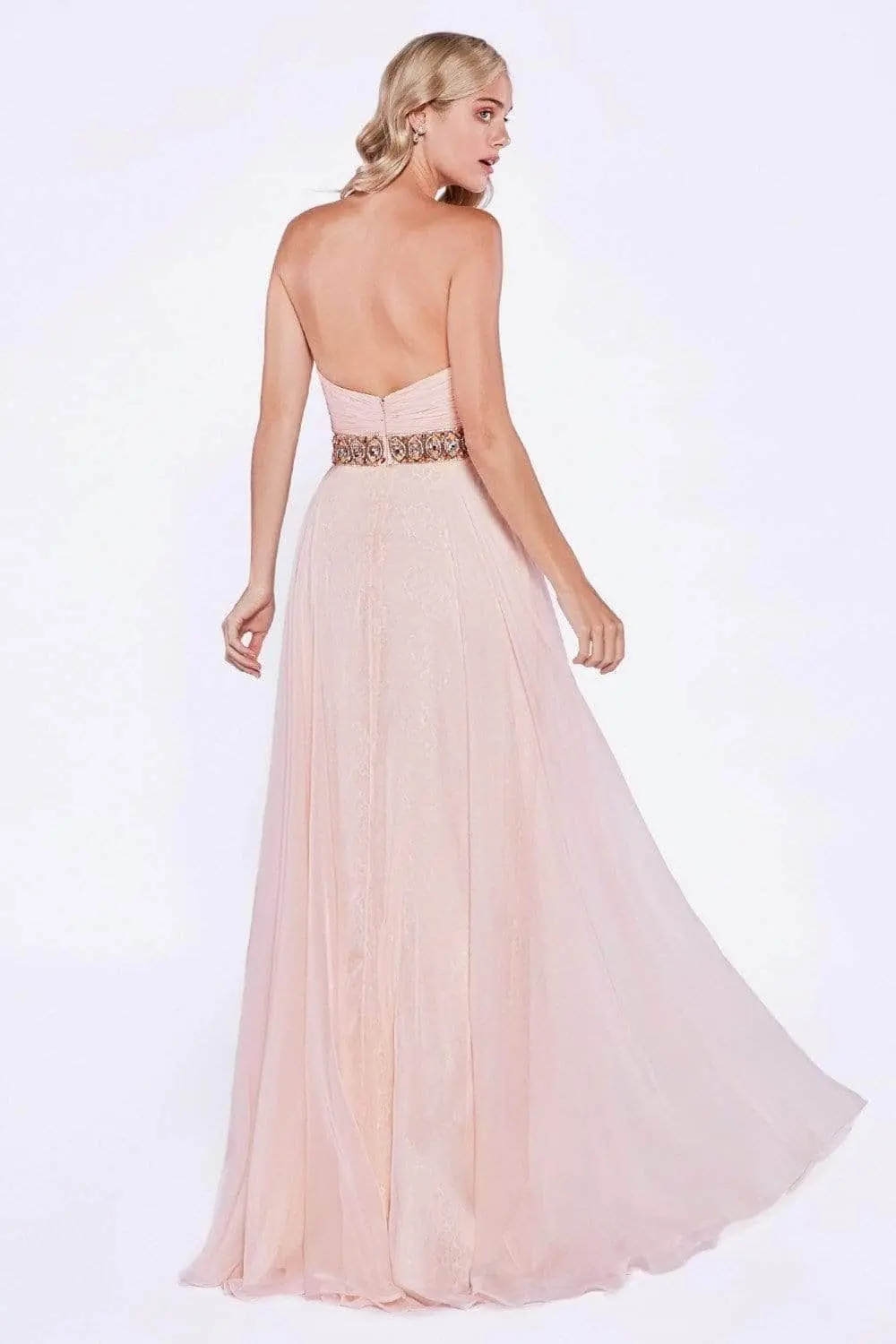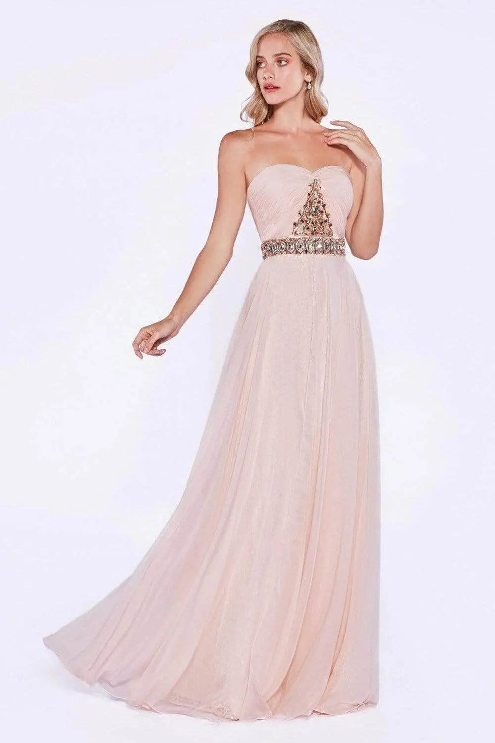 With this stunning evening gown from Ladivine 4079, you will be the center of attention at your upcoming special occasion. The elegant sweetheart neckline of the strapless bodice with a gorgeous mid-open back is highlighted with delicate diamond accents and romantic jewel embellishments, making you the center of attention. This classic tonal ensemble features beautiful waves of pleated, fluttering chiffon layers that flow down the entire length. Wearing this Ladivine 4079 masterpiece will make you stand out wherever you go. Models are wearing the Blush color.