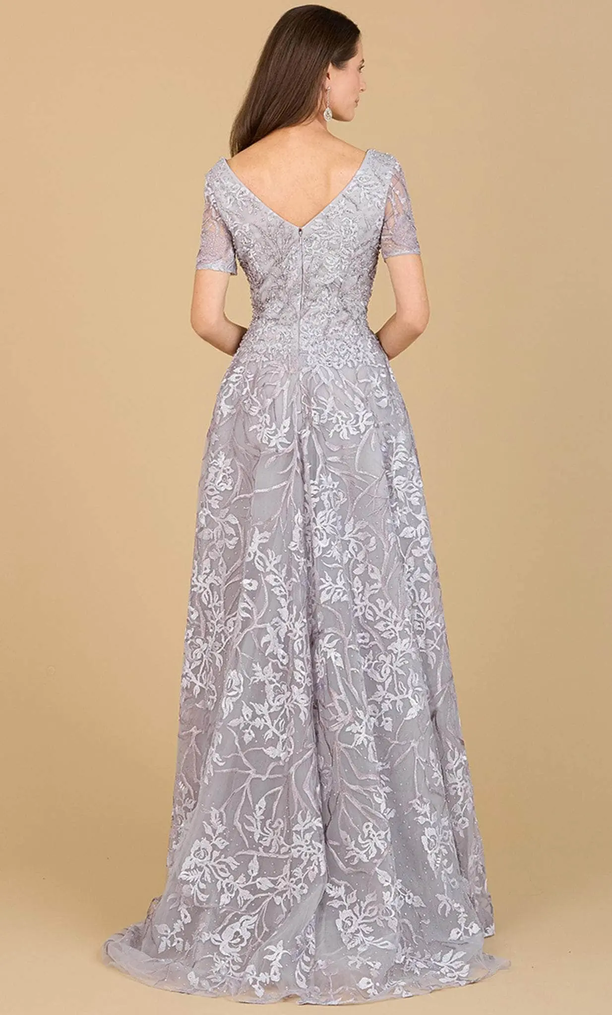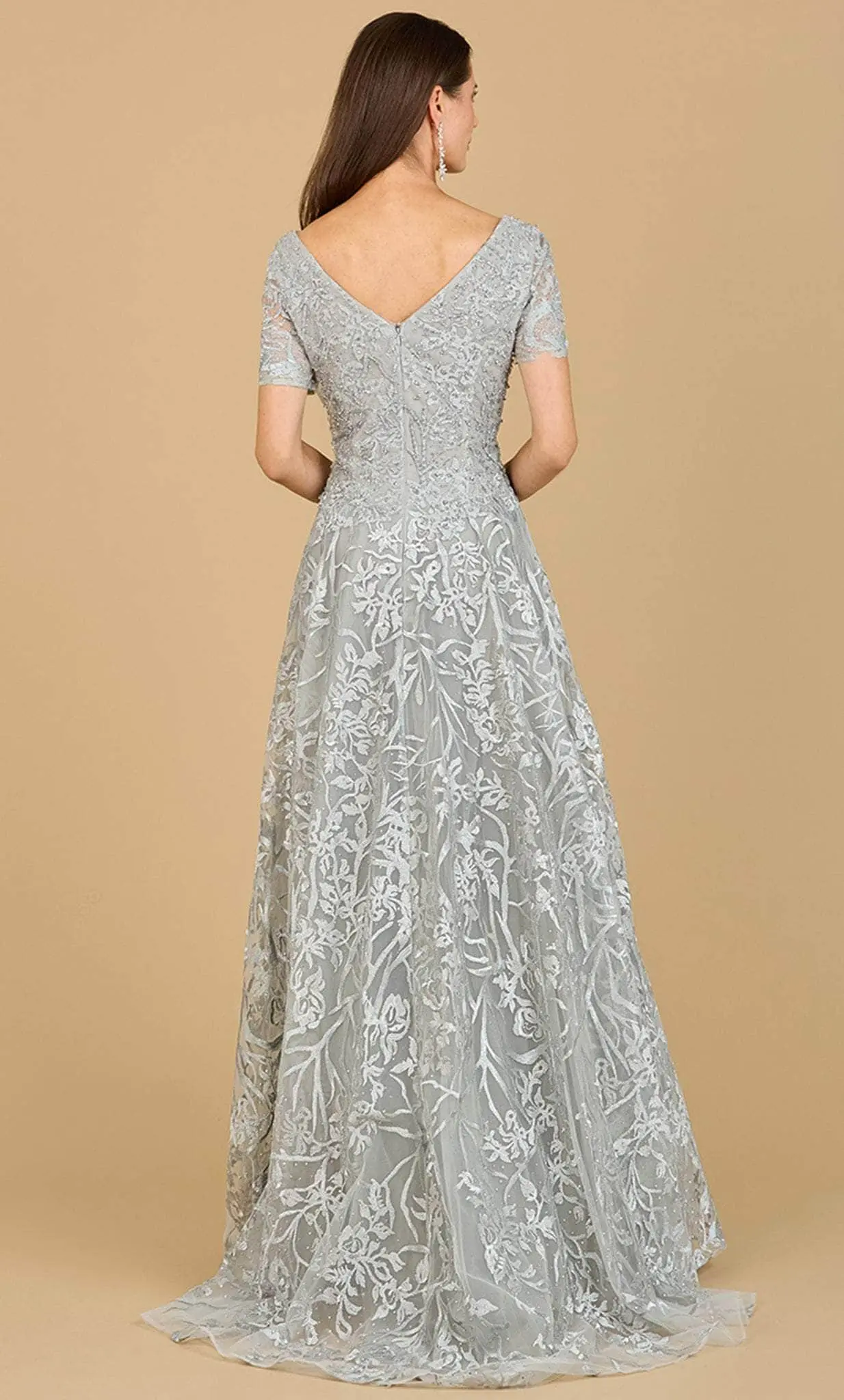 This enchanting Lara Dresses 29193 creation is sure to make you the center of everyones attention. Ornamented with beautiful lace embroidery and sprinkled beads, this gown displays elegance and an eye-catching look. A chic plunging v-neckline, sheer short sleeves and a mid-open v-back are featured on this outfit. The skirt is tailored in an A-line silhouette that glides to the full length hem and sweeping train. Flatter your finest assets as you enthrall the crowd in this Lara Dresses 29193 style. Models are wearing the Dusty Blue and Stone colors.
