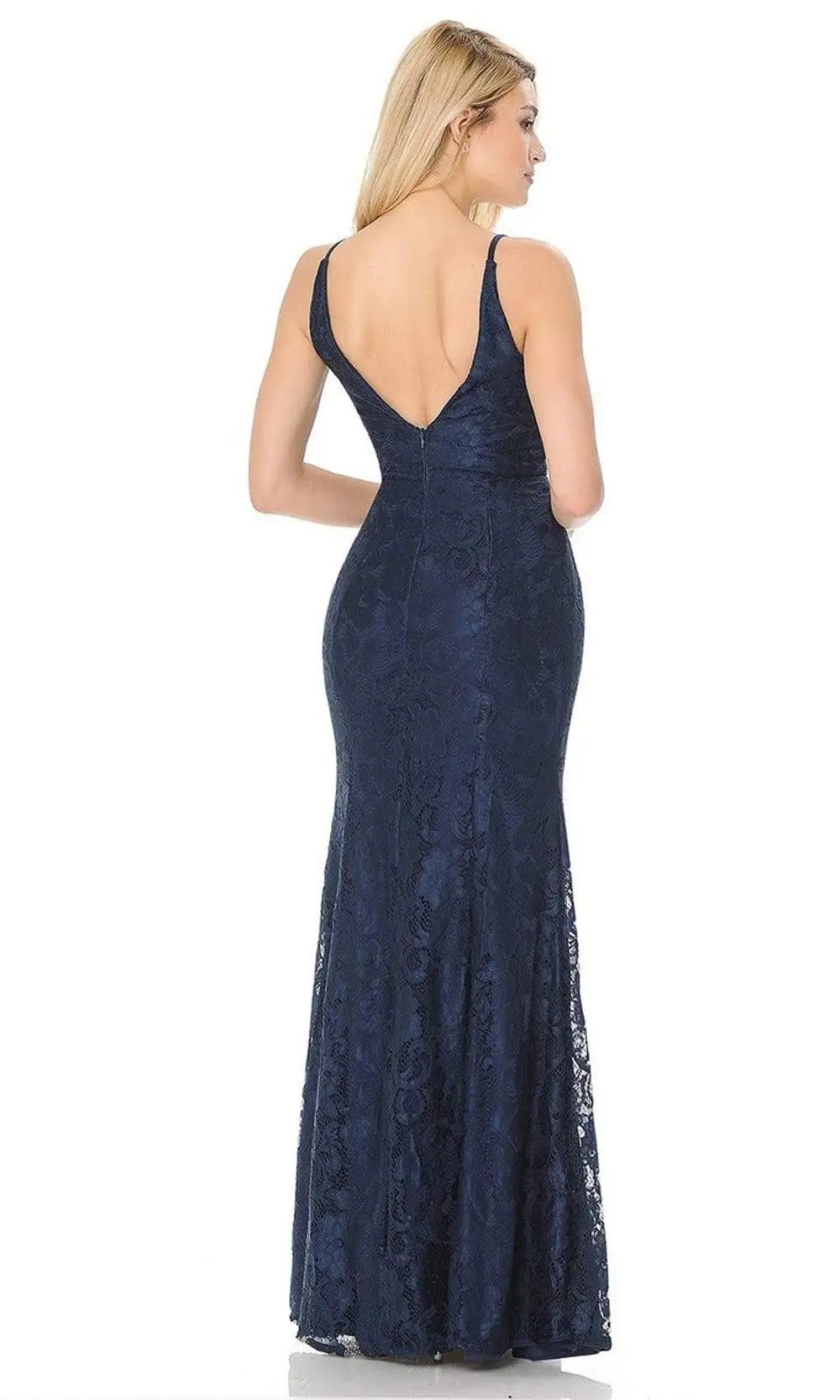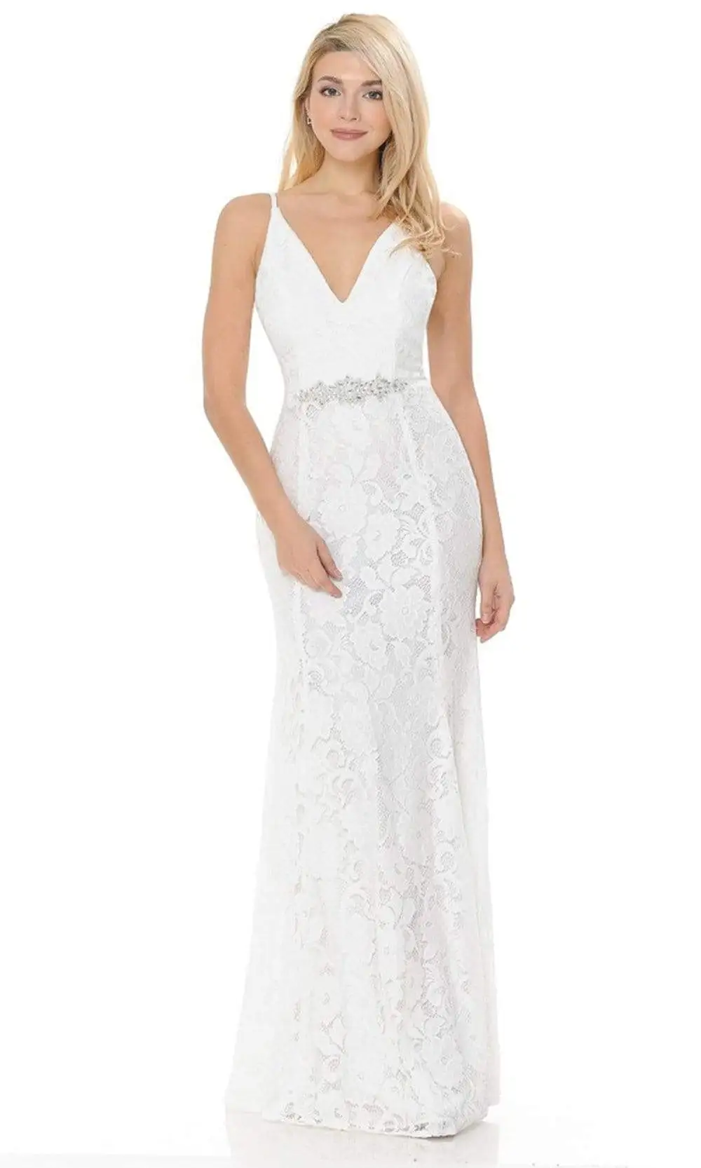 This enchanting dress by Lenovia 5192 is sure to make you the center of everyone’s attention. This lace dress features a sleeveless, V neckline with fitted bodice bedazzled with embellishments. The skirt is tailored in a full length sheath silhouette. Exhibit your softer side in this delightful evening gown by Lenovia.