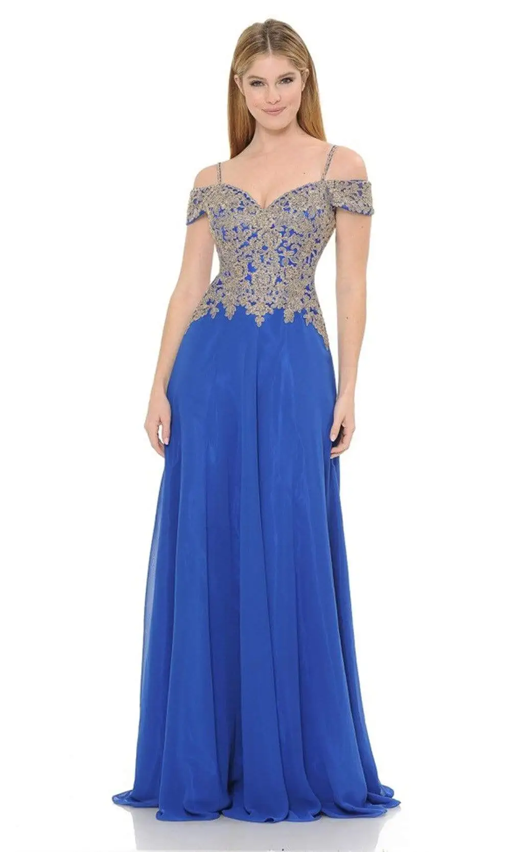 Get ready for everyone to stop and stare when you show up in this dress by Lenovia 8132. Dazzles in an embroidered off shoulder neckline with straps. The dress has a fitted bodice and features a flowy chiffon A-line skirt. This Lenovia creation is truly remarkable!
