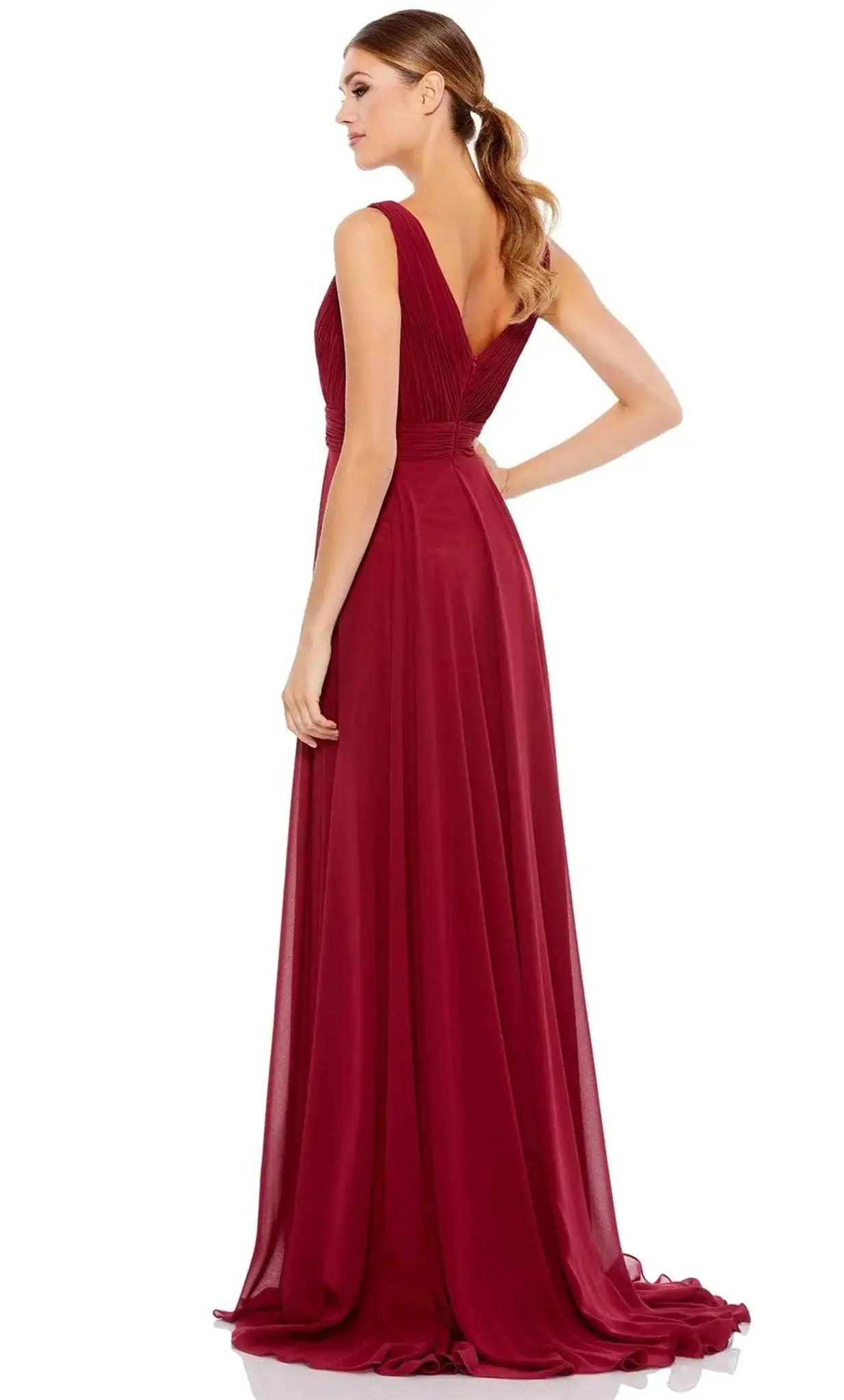 Fantasize a night of eloquent style and poise at your event while wearing this charming Mac Duggal 55249 masterpiece. Tailored on a luxurious chiffon fabric, featuring fine ruchings along the bodice to the waistline, accentuating your figure. Boasts a V-neckline and back, paired with thigh high slit, as the A-line skirt cascades to a sweep train finish. Breeze through your special occasion while making a stylish statement in this Mac Duggal 55249 masterpiece. Models are wearing the Deep Emerald, and Rose colors.