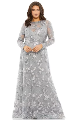 Fill the room with warmth and light in this romantic dress by Mac Duggal 93542. Overlaid with rich lace fabric, this style fashioned in a sheer long sleeve with illusion jewel neckline and a sweetheart lining underneath. Designed with a full back and zipper closure, the A-line skirt flares into a scallop lace trimmed full-length hemline. Make a lasting impression as you glow in this Mac Duggal masterpiece. Exquisite attention to detail is the hallmark of Mac Duggal dresses. Mac Duggal dresses encapsulate the very essence of the women who wear them, reflecting their confidence, feminine power, and inner beauty. The model is wearing Platinum color.