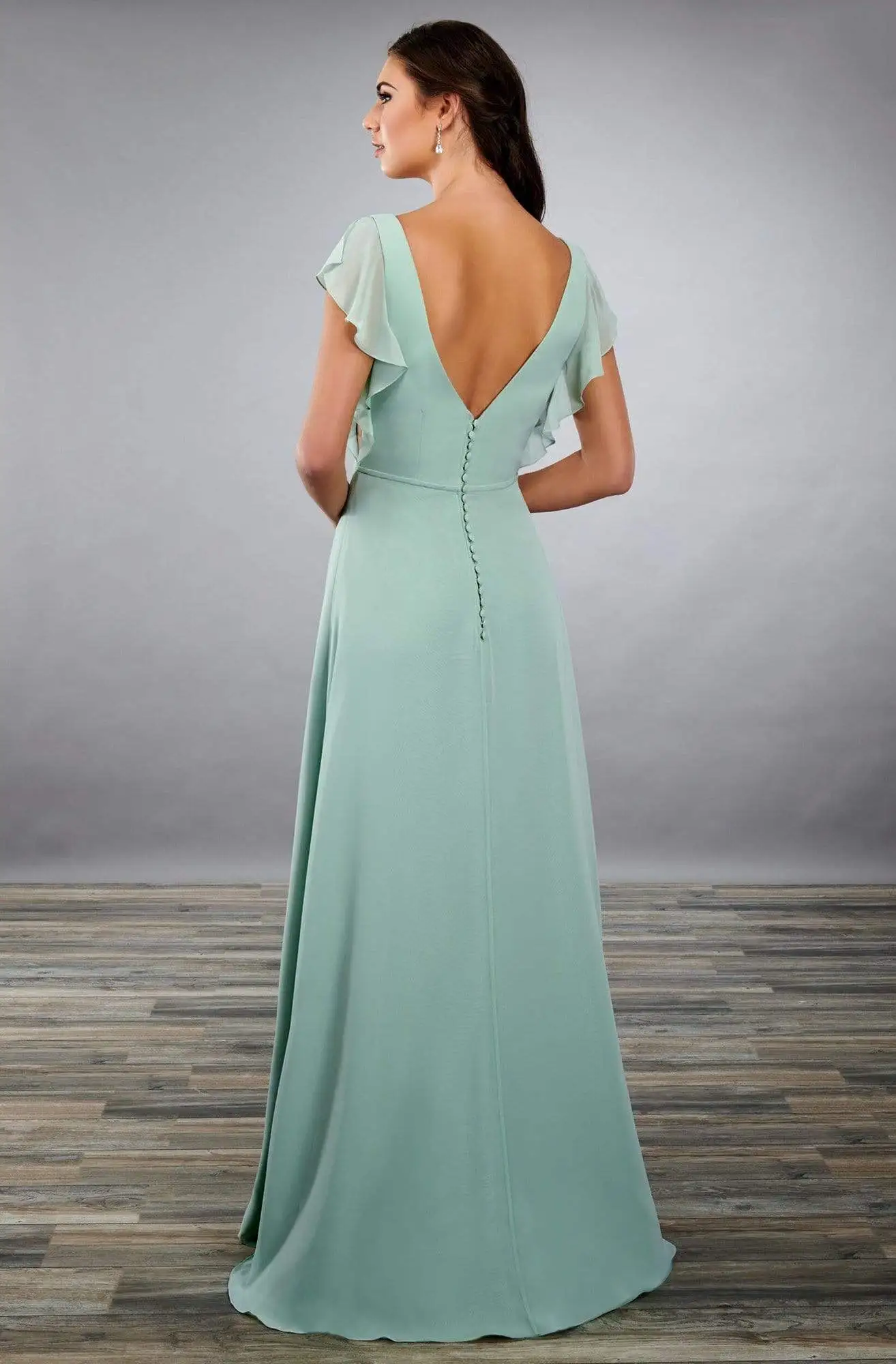 Be the delight of everyone’s eyes in Mary’s Amalia Bridesmaids MB7079. Tailored with a plunging V-neckline, this chiffon stunner is styled with angel sleeves, sheer side inset, and open V-back with button loop closure. The skirt is styled in an A-line silhouette, completing the whole look. This Mary’s Amalia Bridesmaids creation is perfect for any formal evening.