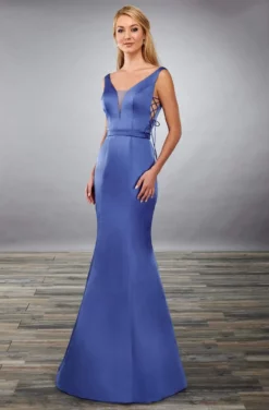 Get glamorous look with this Mary’s Amalia Bridesmaids MB7082. This sleeveless stunner features a plunging V-neckline with mesh, lace-up side cut-out for an edgy appear, waistband, and an open V-back. The mermaid silhouette skirt hugs the shape, completing the look. Another great creation by Mary’s Amalia Bridesmaids.