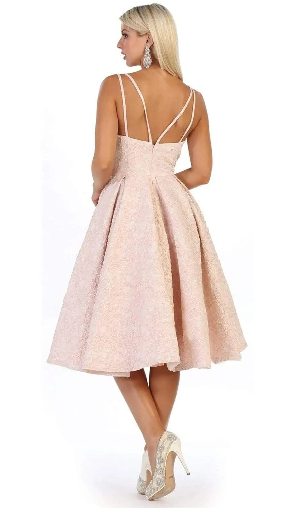 | Details: | Sleeveless, Sheer Inset Detail at the Bust, Dual Thin Straps, Pleated Skirt, Mid-Open Back, Back Zipper Closure |