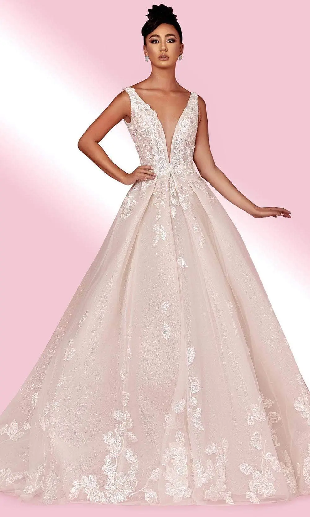Be the spectacular belle on your next formal event in this a-line dress! This strapless dress has a deep V-neckline and the open back of this gorgeous dress stands out. Additionally, it has exquisite lace applique elements that will make you look stunning and modest as you enter the room and walk down the aisle. Turn into such an irresistible vision that captures everyone’s interest in this MNM Couture masterpiece. Model is wearing Off White