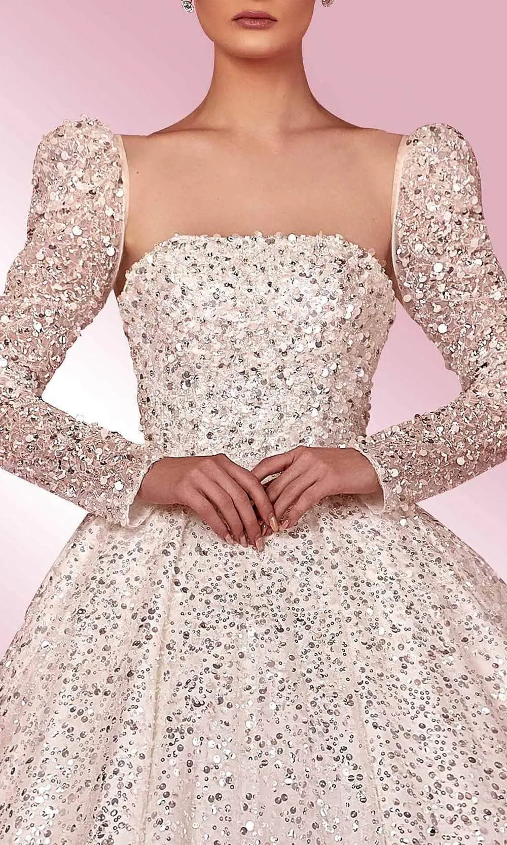 | Details: | Off shoulder, Long sleeves, Sequin embellished, Ballgown |