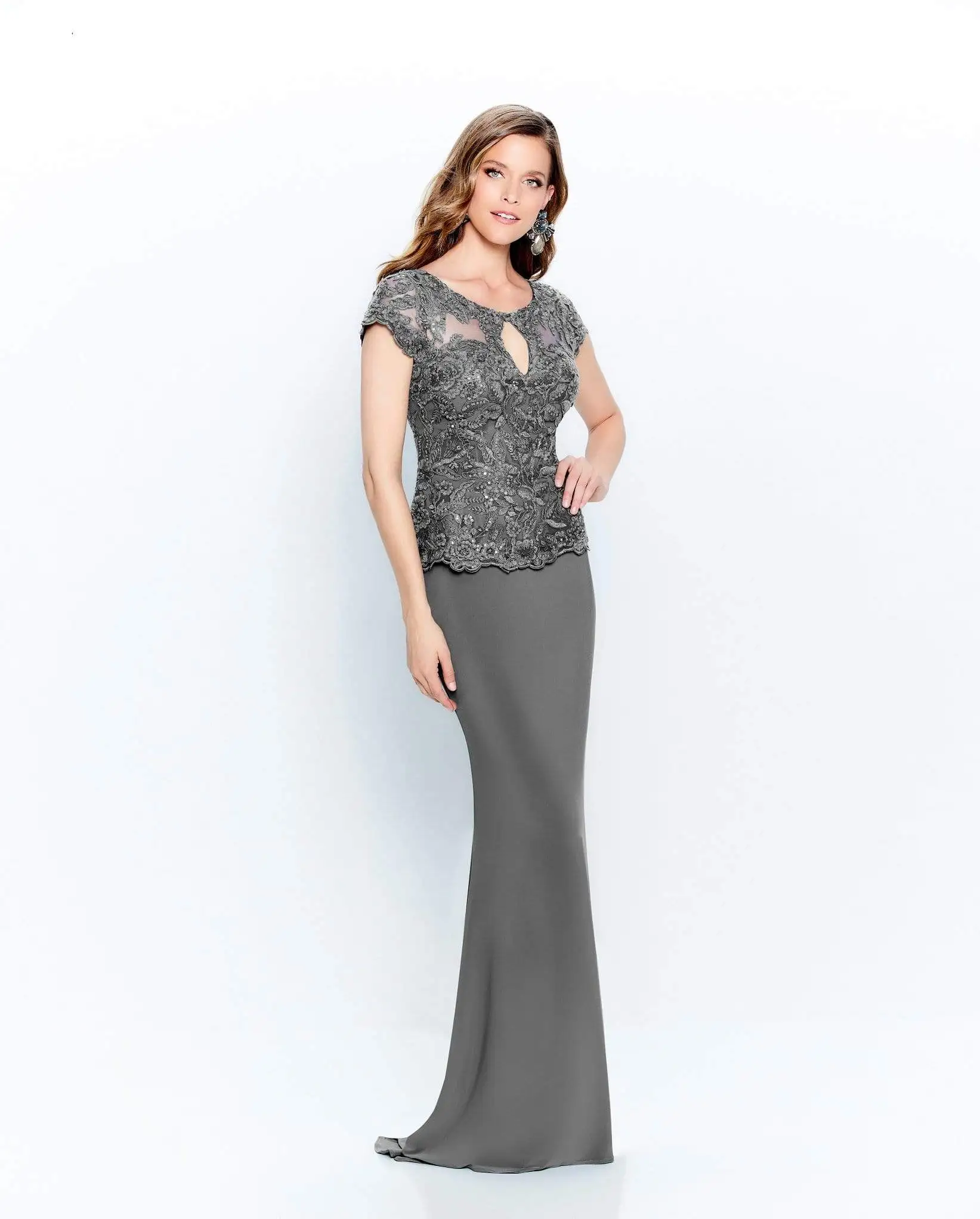 Turn yourself into a head-turning sensation by slipping into this utterly fetching Montage by Mon Cheri 120910W. This long dress flatters your figure and curves, and it features short sleeves, sheer jewel neckline and keyhole front on a fitted bodice designed with embroidery and embedded with sequin appliques. It parades a figure hugging skirt in a sheath silhouette that comes with sweep train that flows softly to the ground. Radiate class and poise as you dance all night long in this timeless Montage by Mon Cheri masterpiece. Model is wearing Charcoal color.